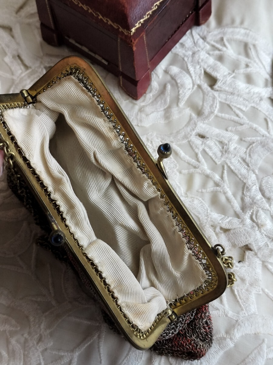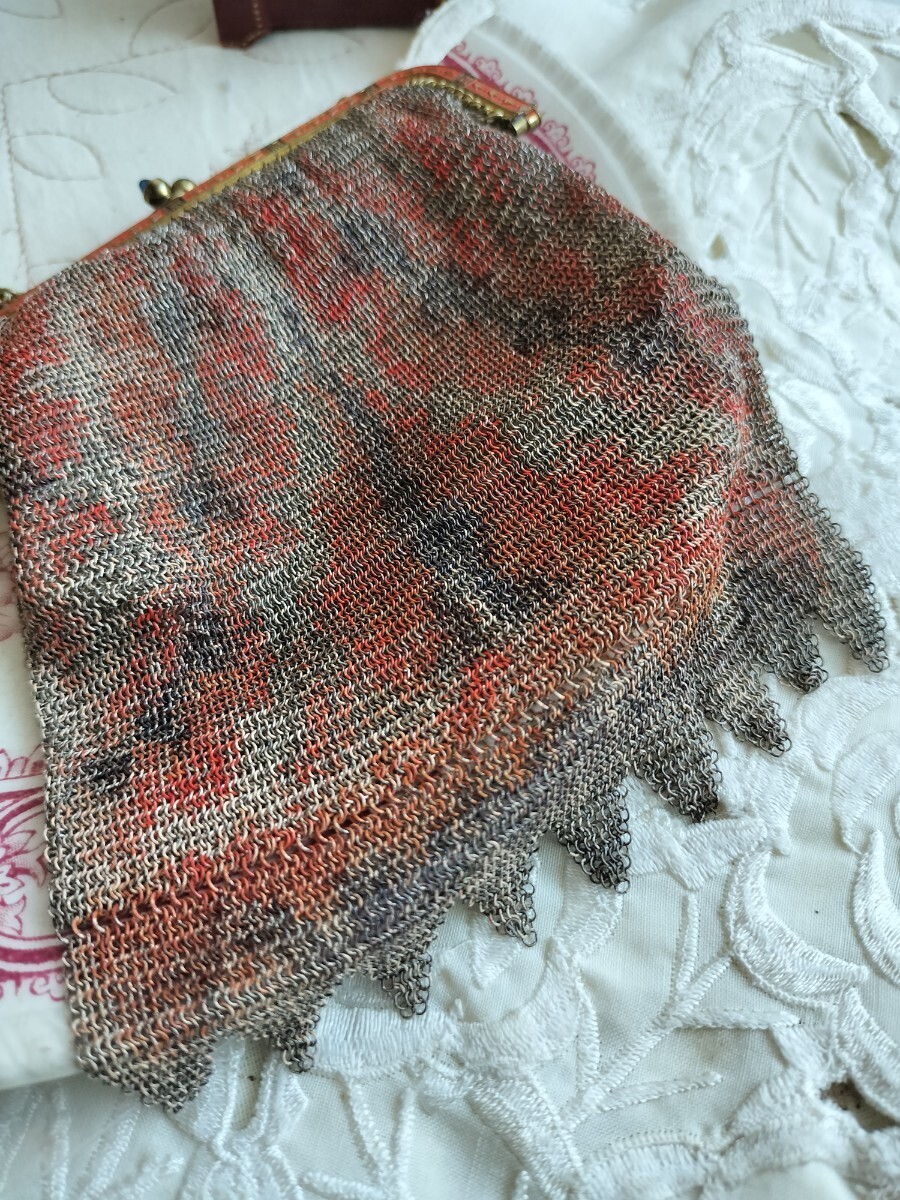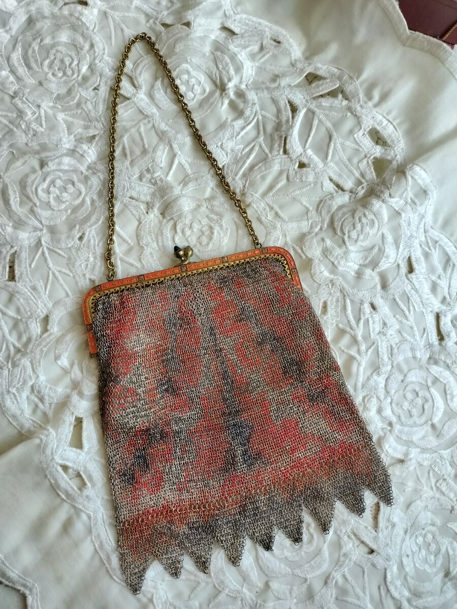 とても小さなチェーンが繋がりメッシュのようになったチェーン付きバッグです。
