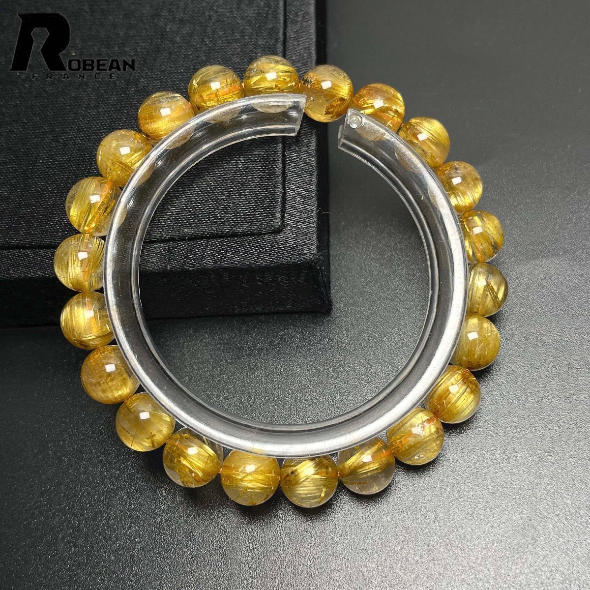 高級 EU製 定価33万円★ROBEAN・極!極満針ルチルクォーツ★猫目 ブレスレット パワーストーン 天然石 金運 お守り 8.9-9.3mm K0313536