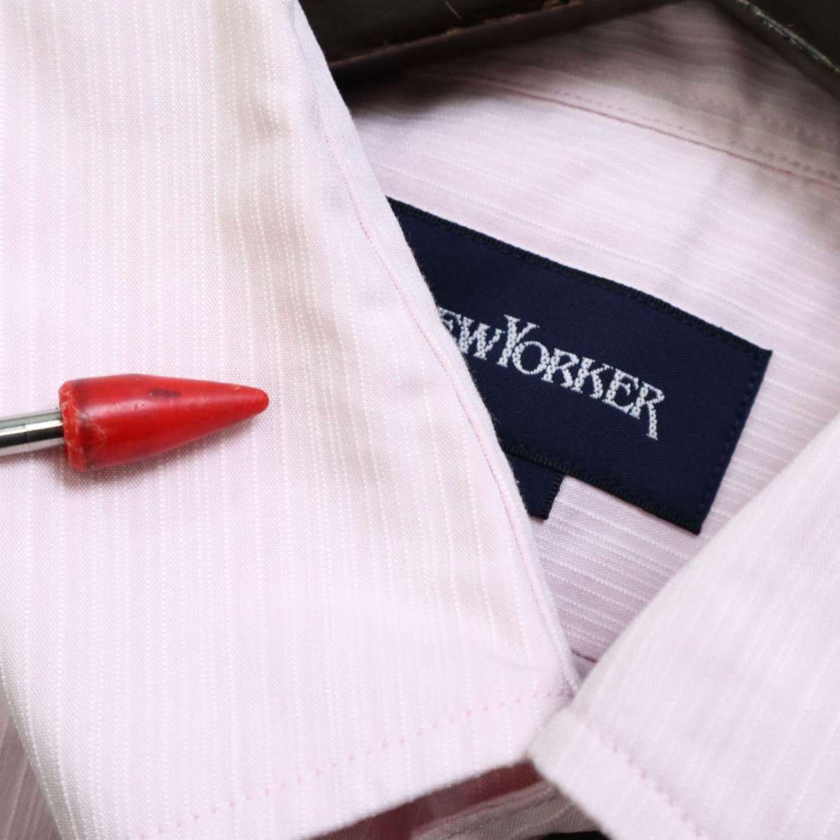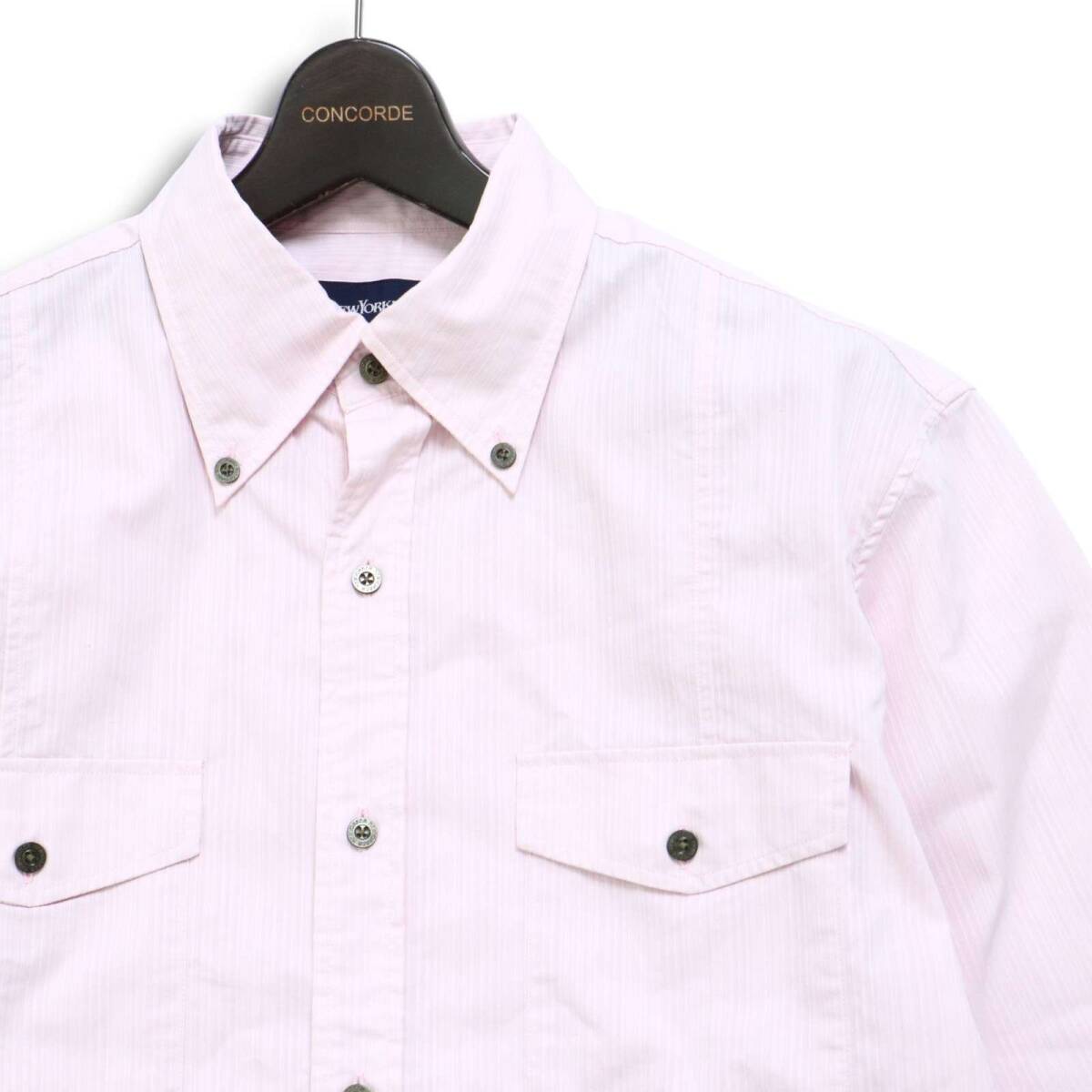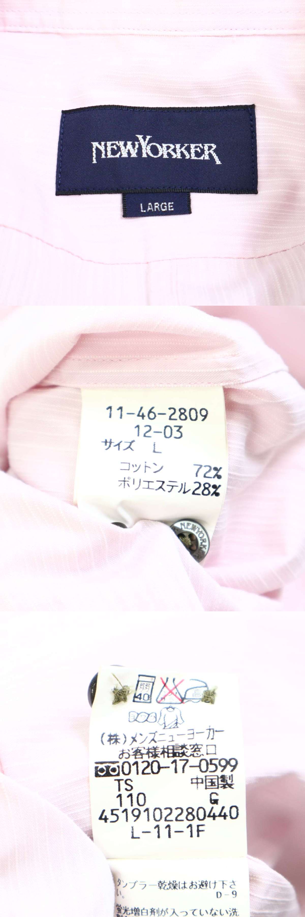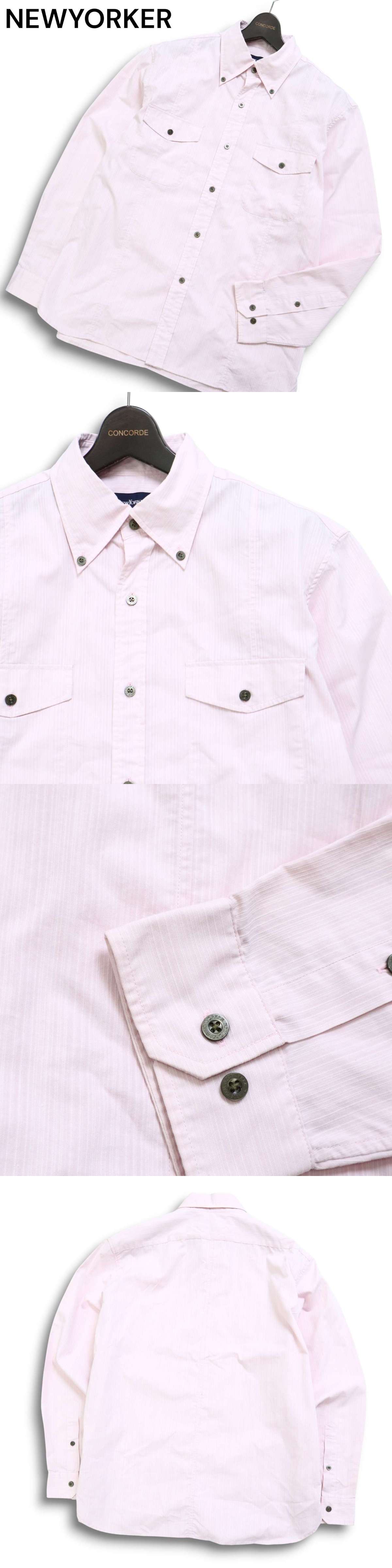 NEWYORKER ニューヨーカー 通年★ ストライプ 長袖 ボタンダウン ワーク シャツ Sz.L メンズ ピンク