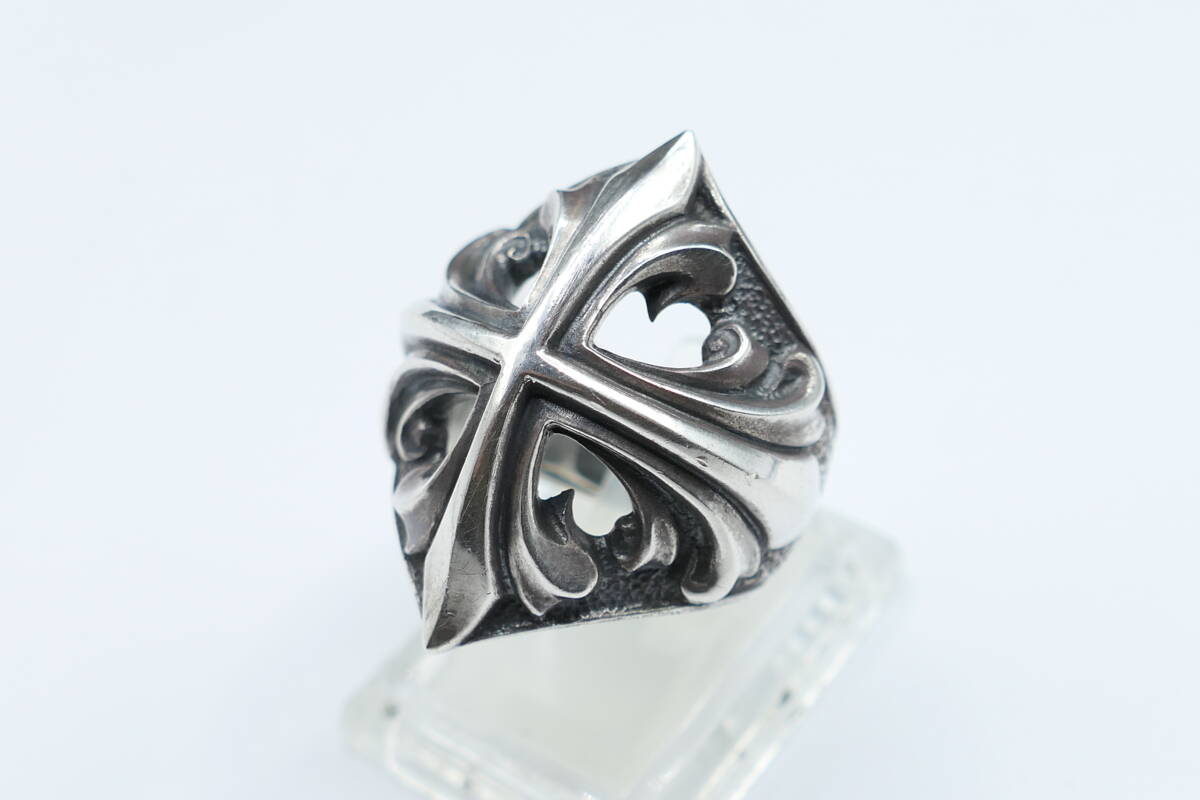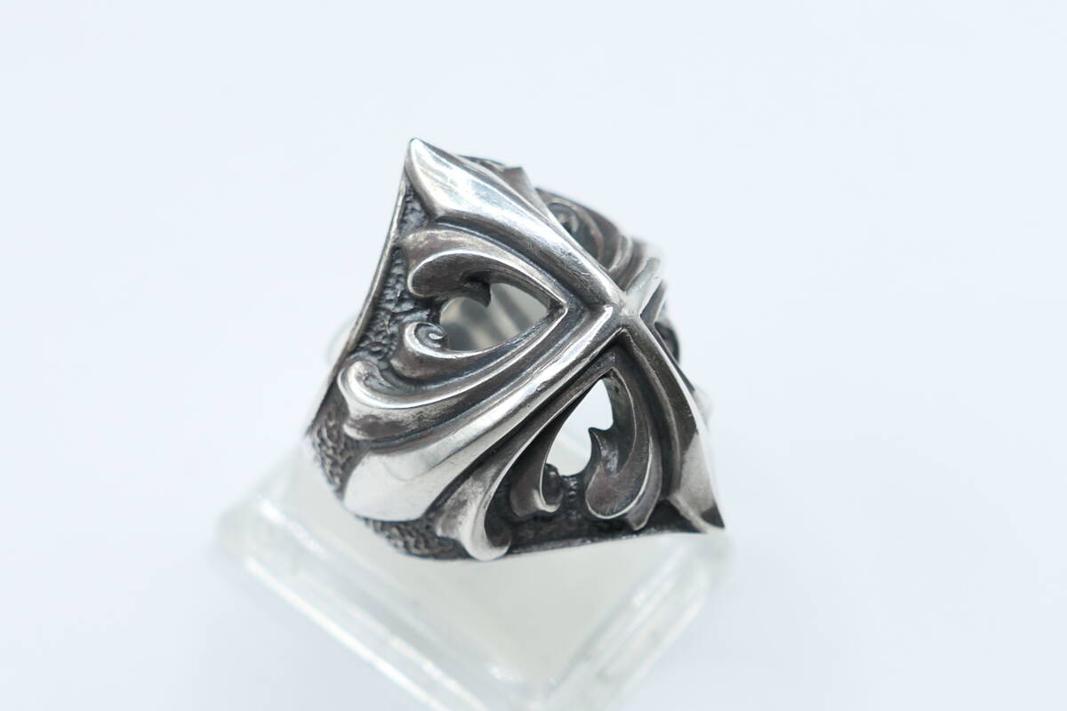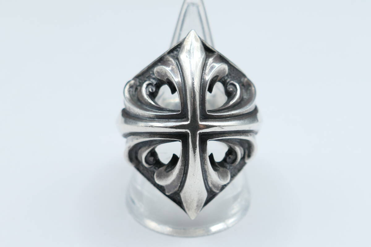このリングも、クロスと百合を組み合わせた普遍的なデザインですが、ボリュームがあり、大人の色気を感じさせるデザインになっています。
