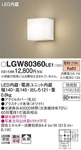 商品名 | パナソニック(Panasonic) ポーチライト・勝手口灯 壁直付型 電球色・拡散・防雨型 60形 ホワイト | ||