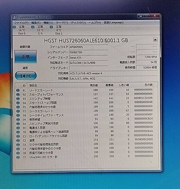 ★動作確認: CrystalDiskInfo アプリで状態確認した状態です。 正常で動作確認済みですが、商品到着後3日以内の場合の動作不良は対応させて頂きます。 特に問題無く使用可能と思いますが、全ての機能をチェックした訳ではありません、 長時間テストした訳でもございません。 購入商品とは別の周辺機器との相性につきましては、弊社では判りかねます。相性などによる接続不能および動作不良などは、保証対象外とさせて頂きます。中古の精密機械は、輸送中の振動や経年変化でとても故障し易くなっています。 ※万が一の、輸送事故で破損や不具合が出た場合は運送会社の補償になります。 落札様のご使用環境、設定により同じ正常状態を保証いたしません。 日光や反射光の影響で写真と実物の色が異なって見える場合がございます。ノークレームでお願いします。 目視でチェックだけ、個別部品のチェックなど行っておりません、 状態は写真で確認してください。 如何なる理由もキャンセル、返品、保障には応じることができません。 本体のみ出品。 | |||