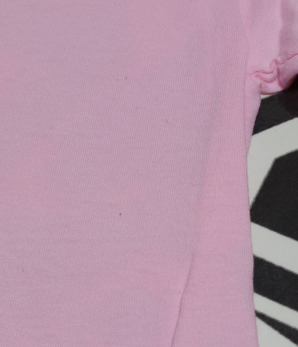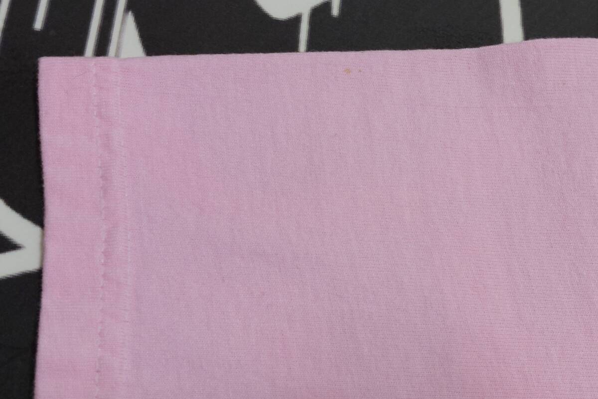 上記以外のボディ本体&プリント部分の経年劣化は無い様に思われます。(検品時に見落としている非常に細かい経年劣化部分がもしかしたら有るかもしれません) ※黒タグ織りネームにのみ保管時にたたみシワが付いてしまっておりますがアイロンをかけてもらえれば真っ直ぐに直ります。