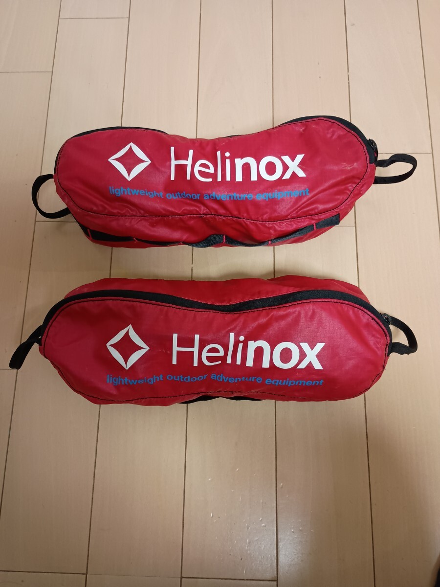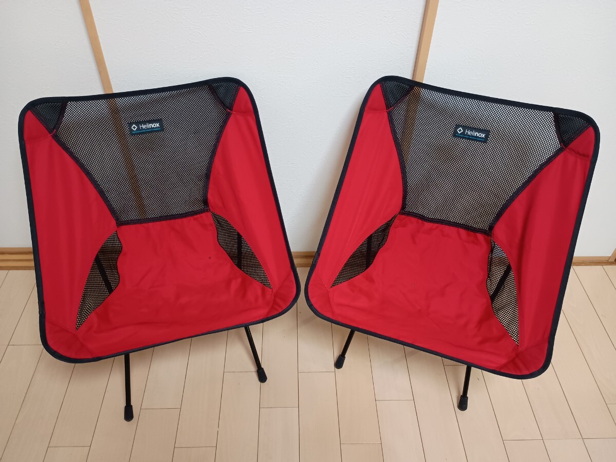 キャンプの焚き火の火の粉により小さな穴が2脚共空いておりますので、写真を掲載致します。