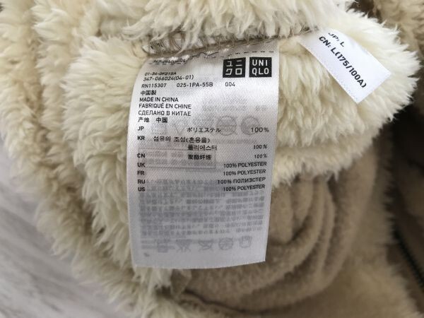 ユニクロ UNIQLO レトロ アメカジ ストリート ミリタリー ボアフリース フェイクムートン ジャケット パーカー メンズ L ベージュ です。