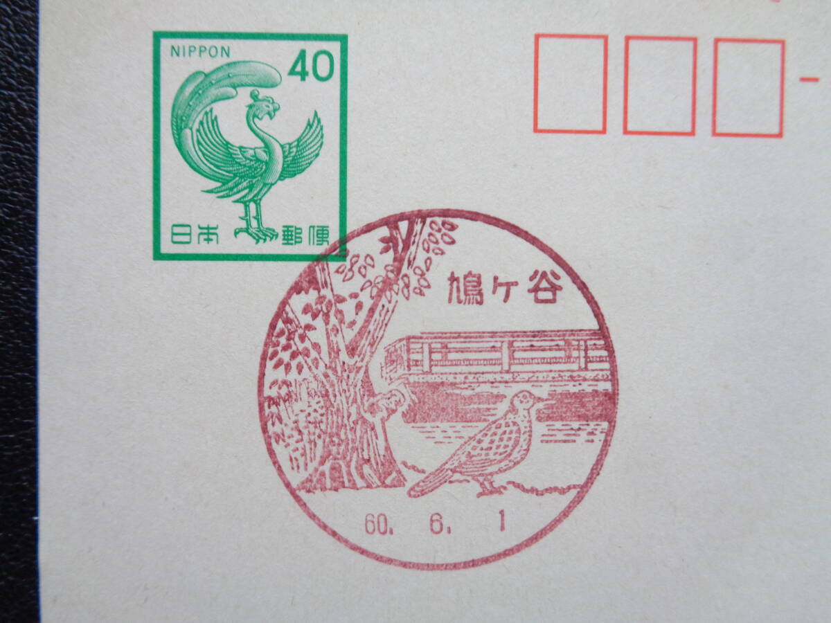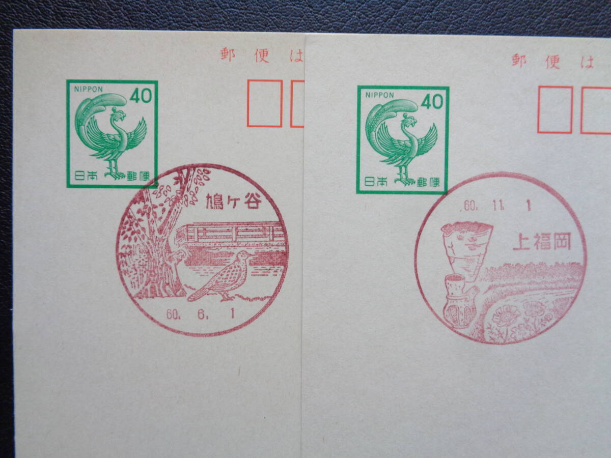 鳳凰はがき    初日印/風景印    埼玉県2枚    上福岡/S60.11.1    鳩ヶ谷/S60.6.1