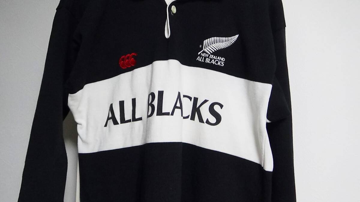 カンタベリー オールブラックス 海外 S ★ロゴ 長袖 ポロシャツ シャツ トップス ラガーシャツ 黒 M メンズ ラグビー