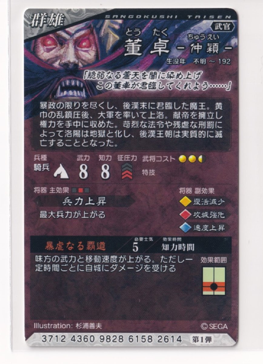 三国志大戦4 旧枠 群 1弾 SR 董卓 暴虐なる覇道 兵力上昇 コレクション用 【3子09】