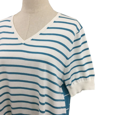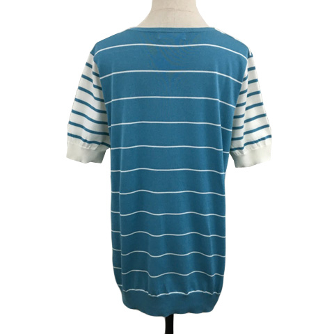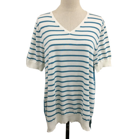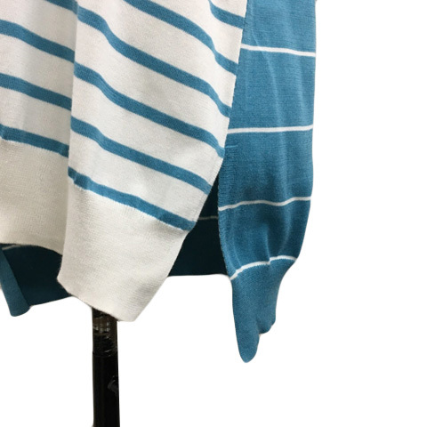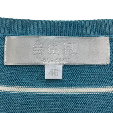 自由区 オンワード樫山 カットソー ニット プルオーバー Vネック ボーダー 半袖 46 白 青 ホワイト ブルー レディース