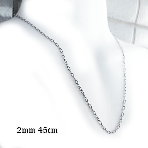 2mm幅45cm 長小豆2面カットステンレスチェーンネックレス CD12
