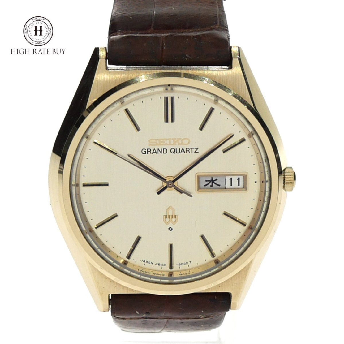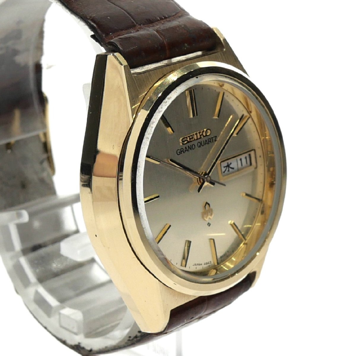 1円スタート SEIKO セイコー GRAND QUARTZ グランドクォーツ 4843-8041 デイデイト クォーツ ラウンド ゴールド文字盤 メンズ 動作未確認