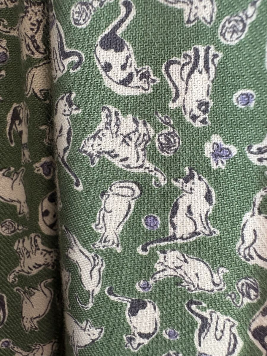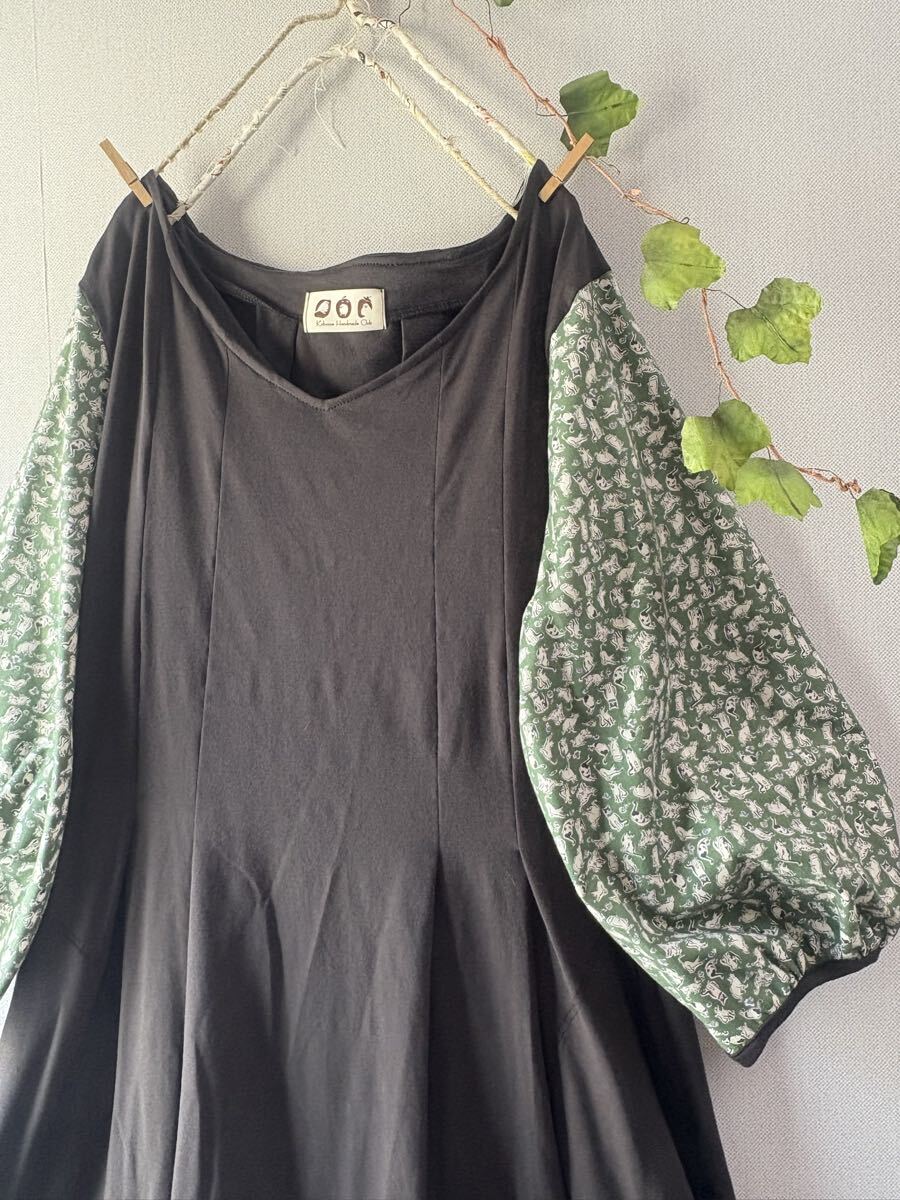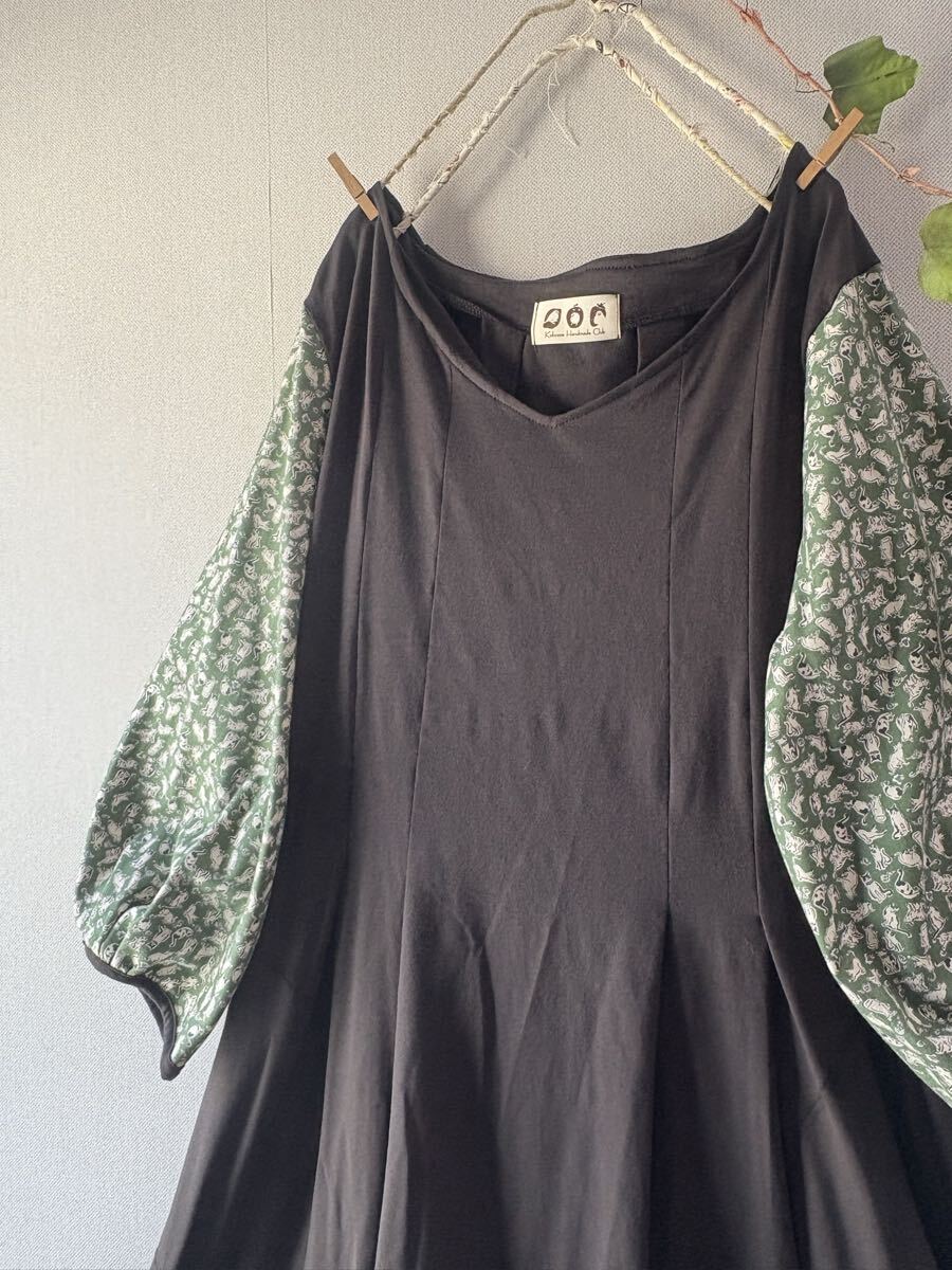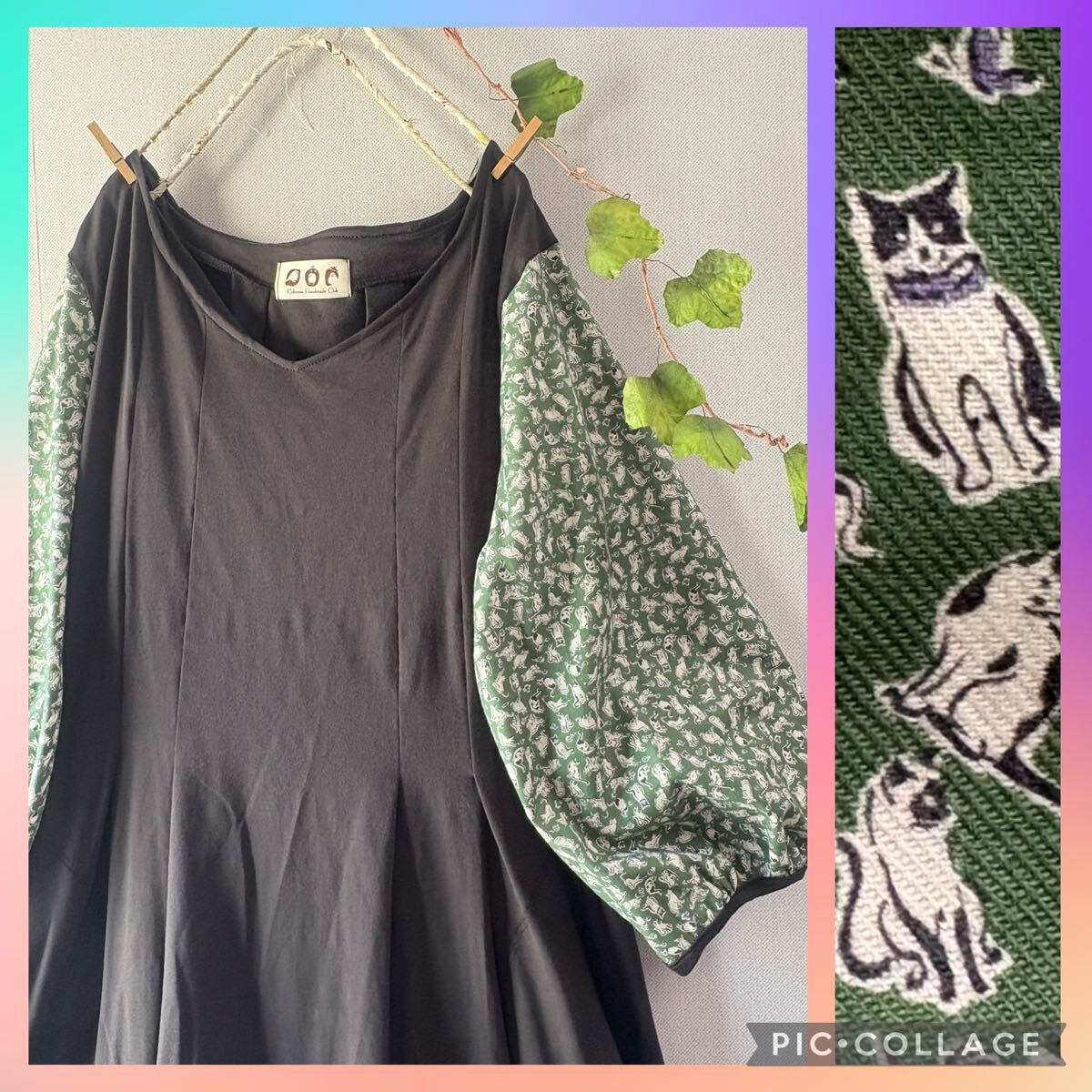 袖が猫柄のワンピースです。 色んな種類の猫ちゃんが! 両サイドにポケット付 柄:コットン素材 無地部分:伸びるニット生地 ポリエステル/コットン 一点一点手作りした品です。 サイズ:フリーサイズ <平置き寸法> 身丈105cm・脇下身幅50cm 肩幅40cm・袖丈46cm ※丈詰め・ポケット付けなどのお直しは承っておりません。 | |||