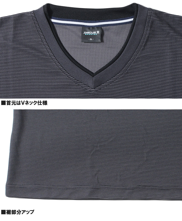 | 商品名 | 【新品】 2L チャコールボーダー DISCUS ディスカス 半袖 Tシャツ メンズ 大きいサイズ Vネック 無地 ドライ ワッフル 吸汗速乾 消臭 抗菌 カットソー |