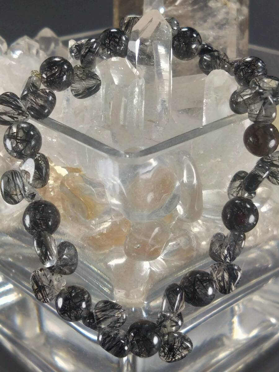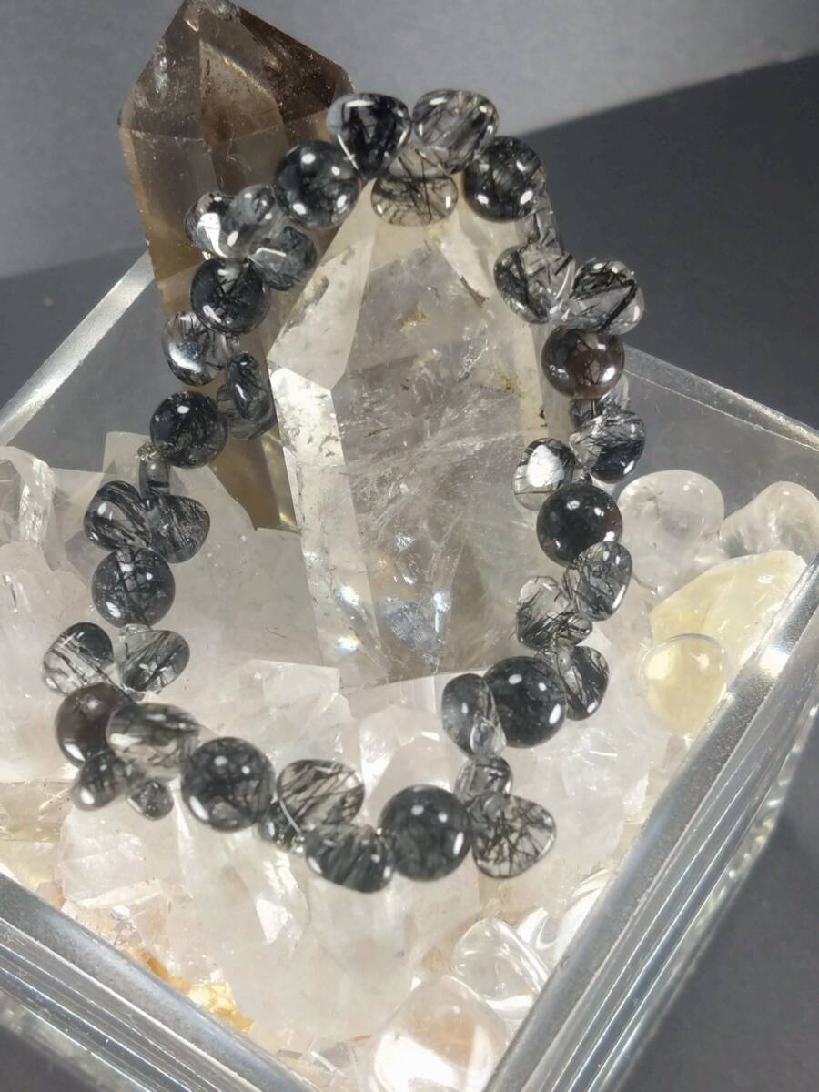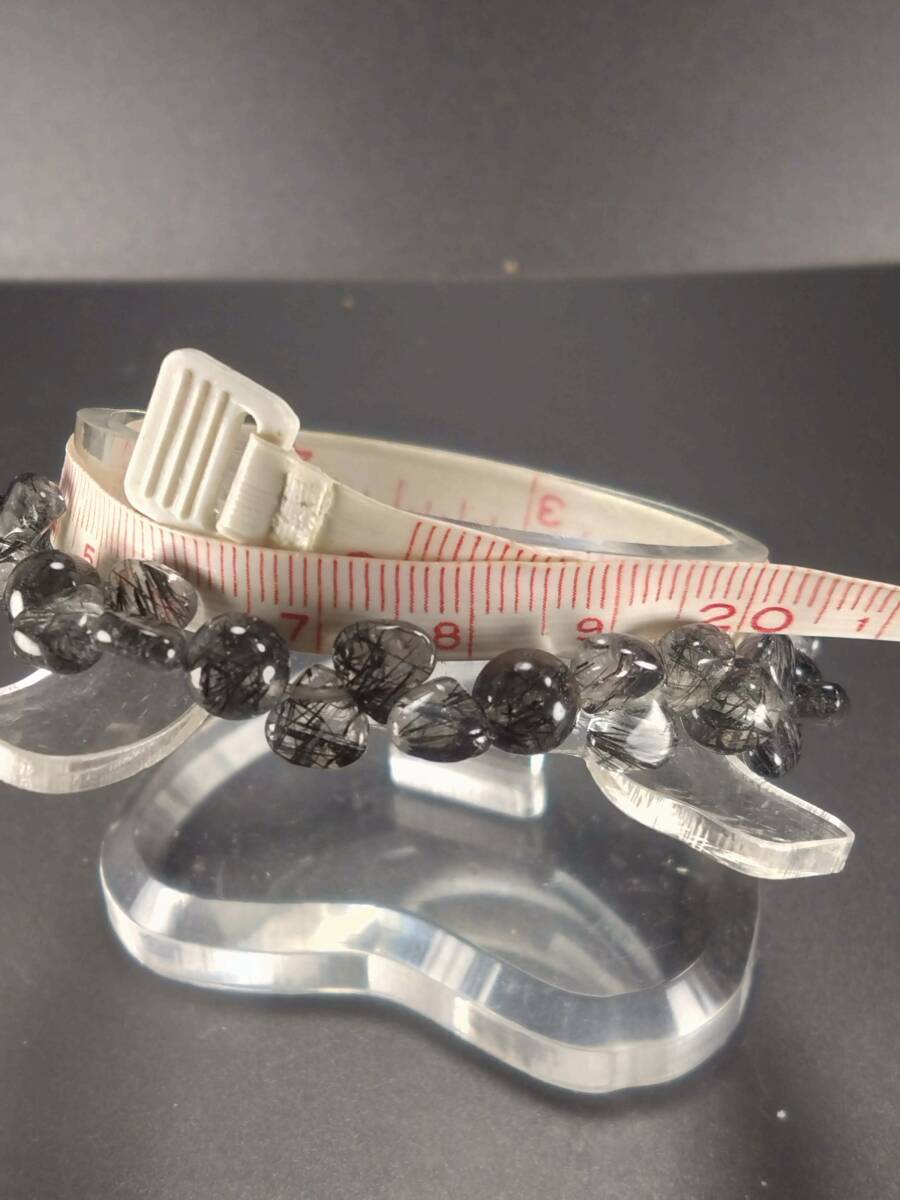 ブラックルチルインクォーツ シェイプ型 内径約17.5cm 外径約20.8cm モビロンゴム使用デザインブレスレットのご紹介です 在庫処分特価にしていますが新品です まだノーオーナーですのでご安心下さい