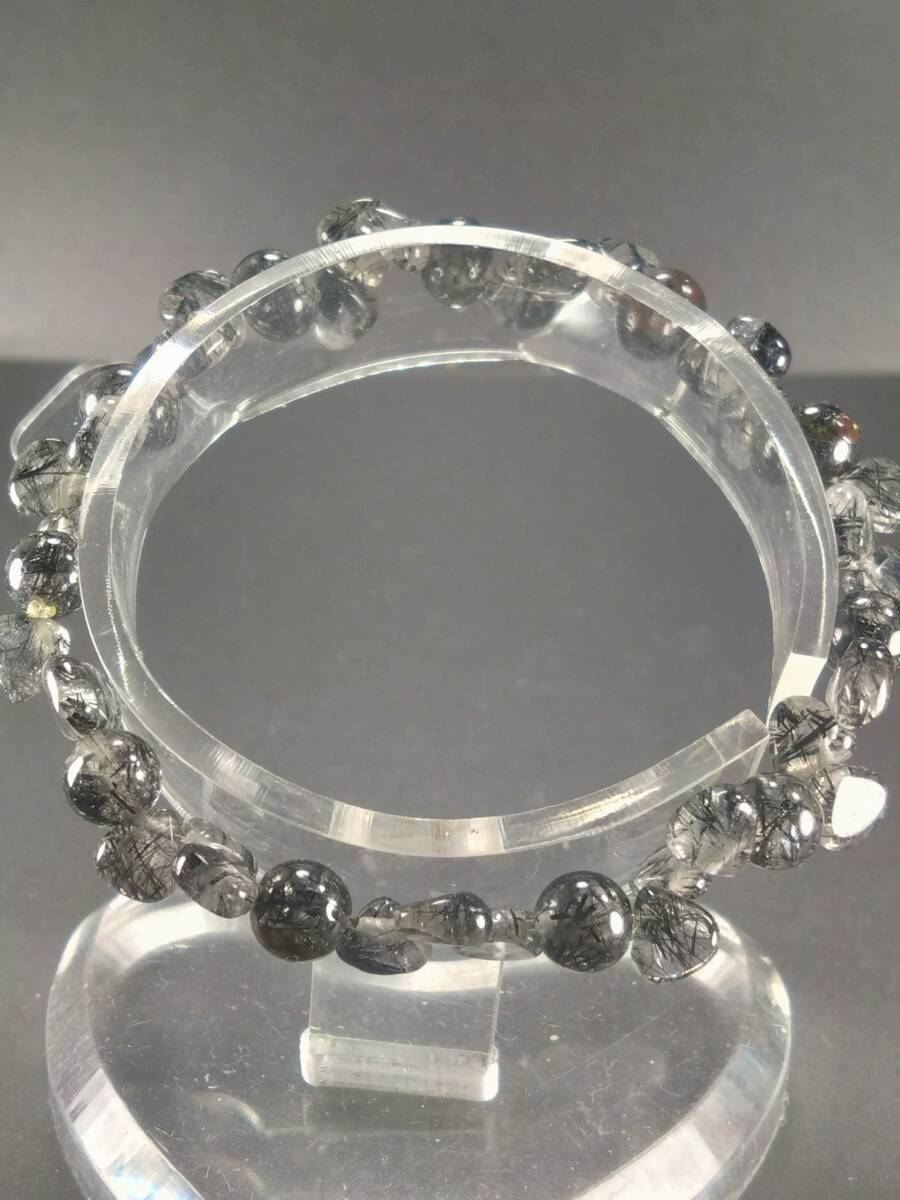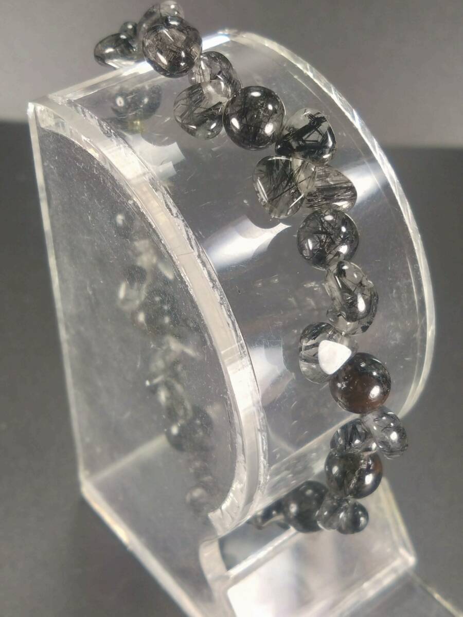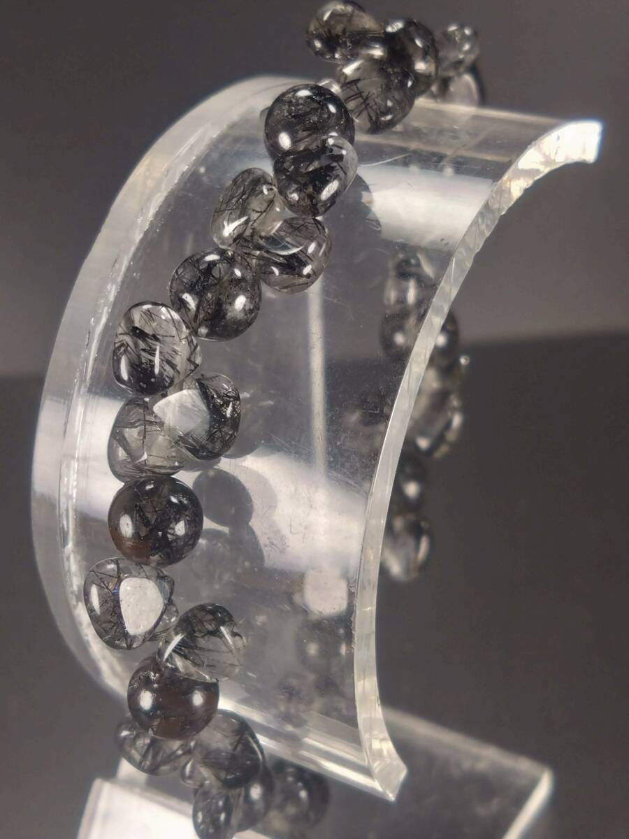 ブラックルチルインクォーツ シェイプ型 内径約17.5cm 外径約20.8cm モビロンゴム使用デザインブレスレットのご紹介です 在庫処分特価にしていますが新品です まだノーオーナーですのでご安心下さい