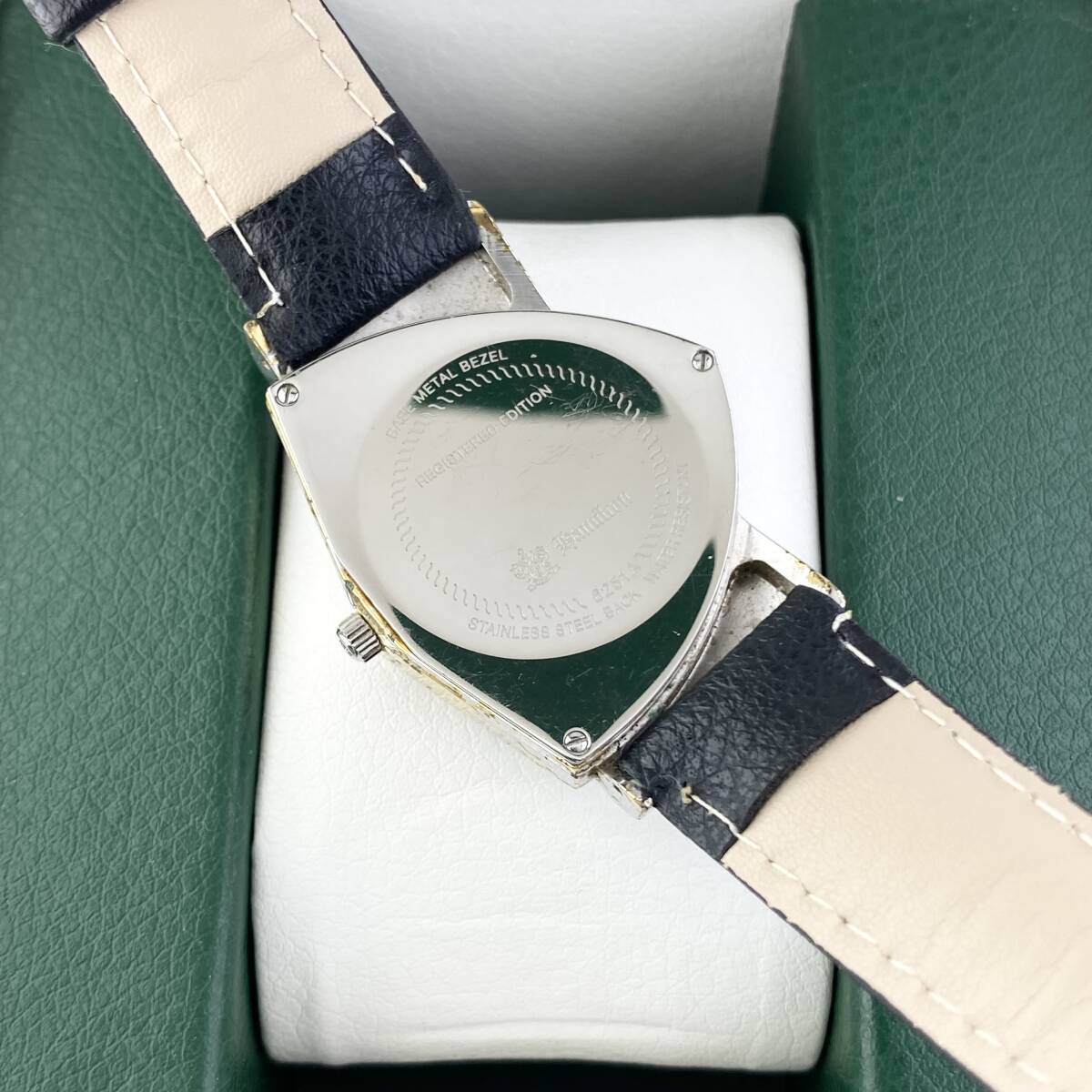 【ブランド名】HAMILTON ハミルトン 【ケースサイズ】約3.2cm(リューズ除く) 【ムーブメント】QZ 【腕回り】約-cm 【可動状態】可動 【時刻操作】操作確認済み 【カレンダー操作】- 【付属】- 【その他】秒針進み遅い 【注意事項】 ・中古品ですので、ご理解を頂いた上での入札をお願い致します。 ・商品のイメージ画像は、撮影時の照明や光の加減等、ご覧のPCモニター等により、微妙に異なって表現される場合がありますので予めご了承下さい。 ・新規IDの入札はお断りしております。 ・現状販売となります。商品状態や説明文をご理解頂いた上での購入をお願いします。またノークレームノーリターンでお願いします。 ・QZ時計で不動と記載のある場合は電池交換後の動作保証は出来ません。 ・万が一、動作説明との相違や偽物だった場合は商品到着7日以内にご連絡をお願いします。尚、お客様都合による返品はお応え出来ません。 ・ご連絡は48時間以内にお願い致します。3日経過してご連絡頂けない場合には、お取引のご意志が無いものとして、落札者様都合のキャンセルとさせて頂きます。 ・撮影に箱を使用しており、付属品の項目に何も記載が無い場合は箱は付きません。 ・海外発送は致しませんので、ご了承下さい。 ・リサイクル段ボールを利用する場合がありますので、予めご了承ください。 【お知らせ】 ・他にも出品していますので、ぜひご覧ください。 誠心誠意・迅速な対応を心がけ、対応させて頂きます。また最後までご覧くださり、ありがとうございます。 | |||