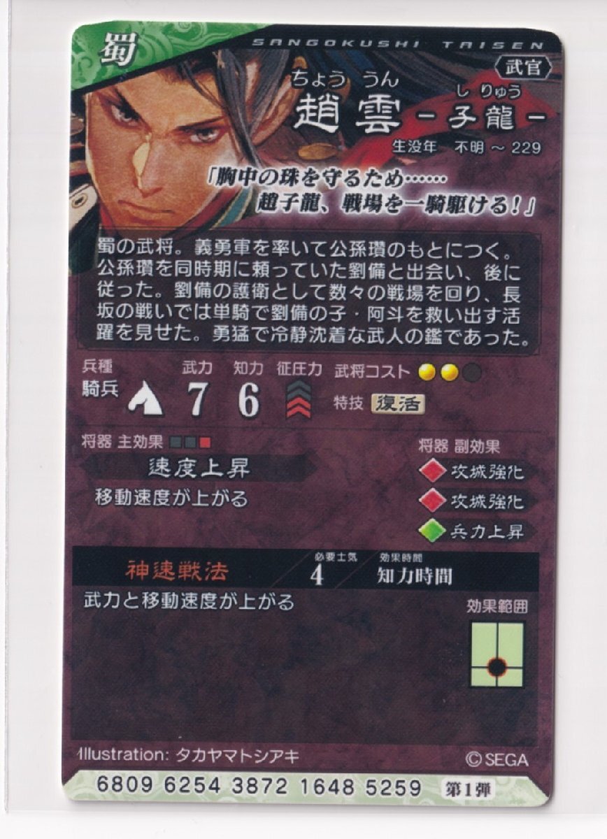 三国志大戦4 旧枠 蜀 1弾 SR 趙雲 神速戦法 速度上昇 コレクション用 【3子09】