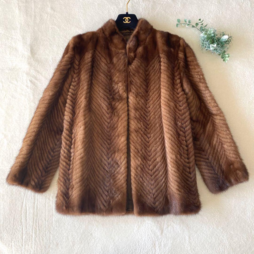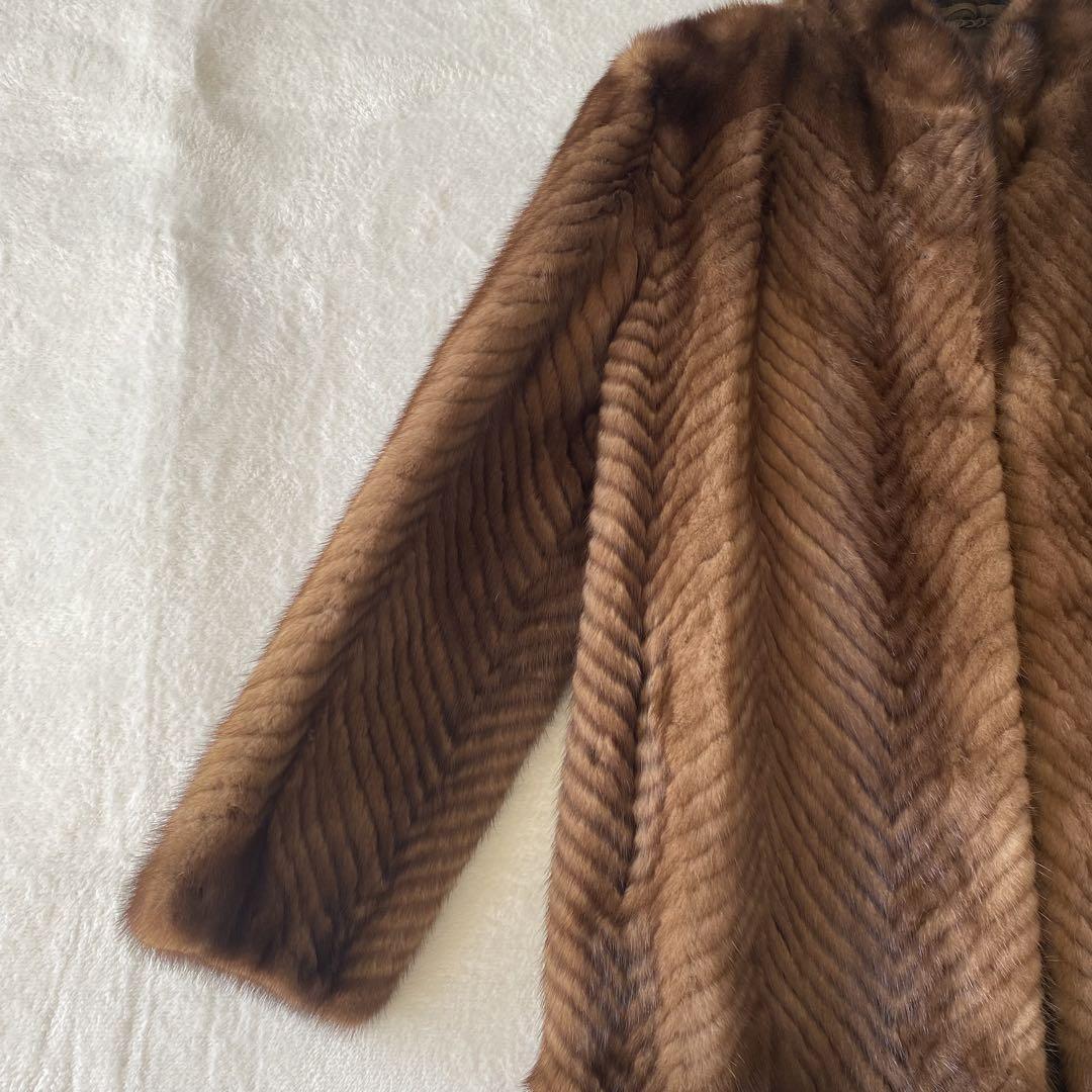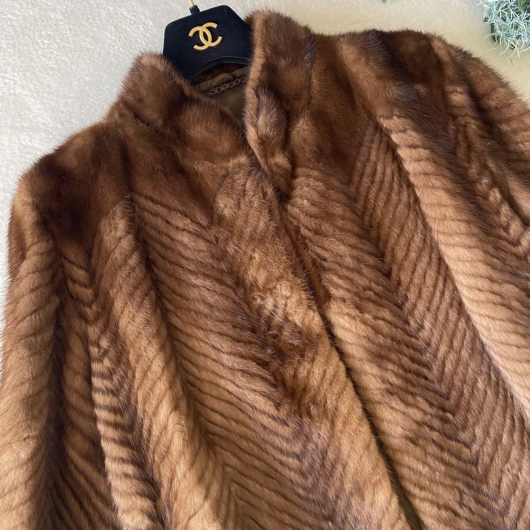 綺麗なヘリンボーン柄にシェアードされたミンクのジャケットコート