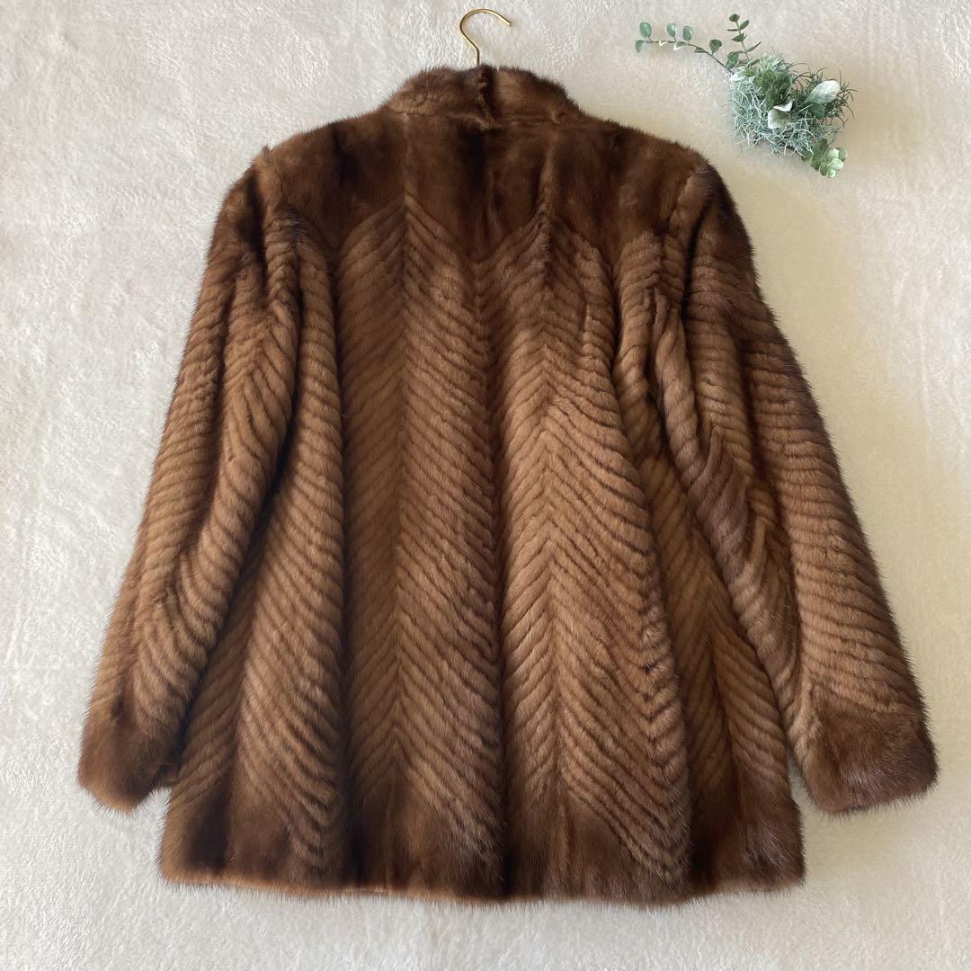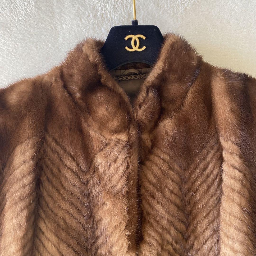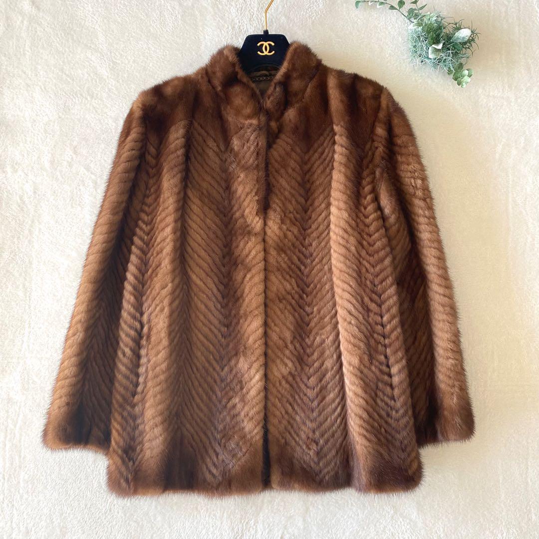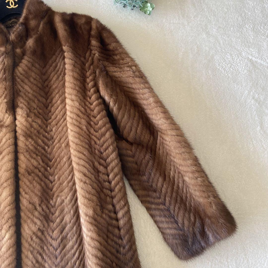 綺麗なヘリンボーン柄にシェアードされたミンクのジャケットコート