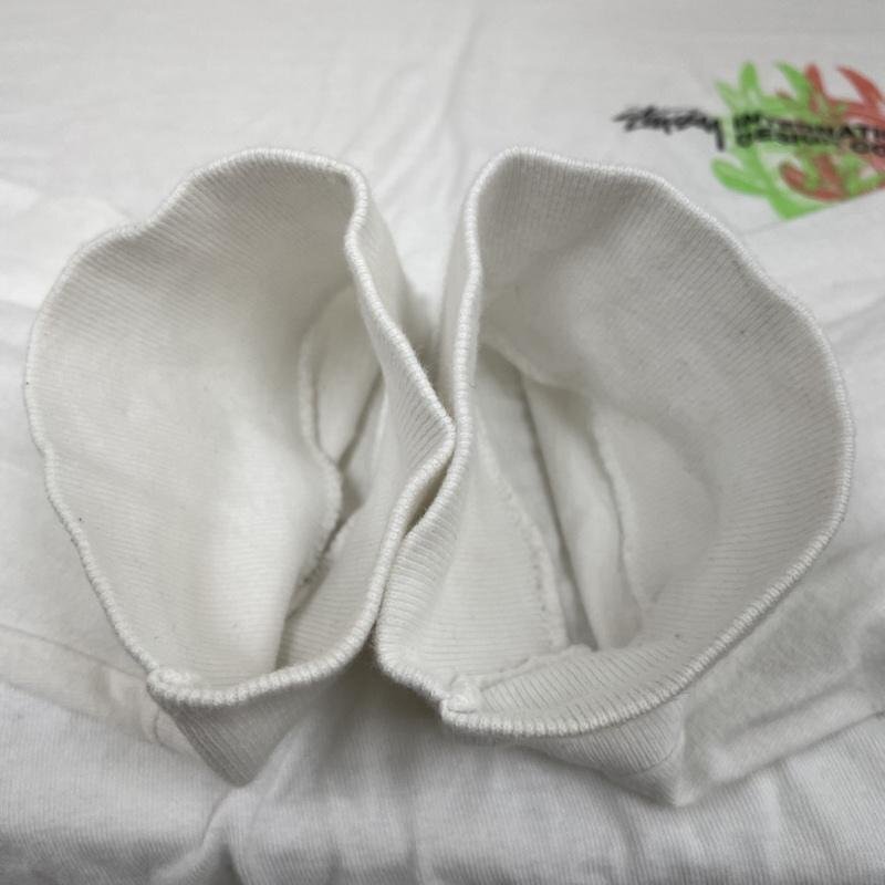 左袖と、後身頃の裾裏地にシミ。前身頃に汚れ。首周りに汚れ。こちらの商品はゆうパケット限定発送の為、日時指定はご遠慮ください