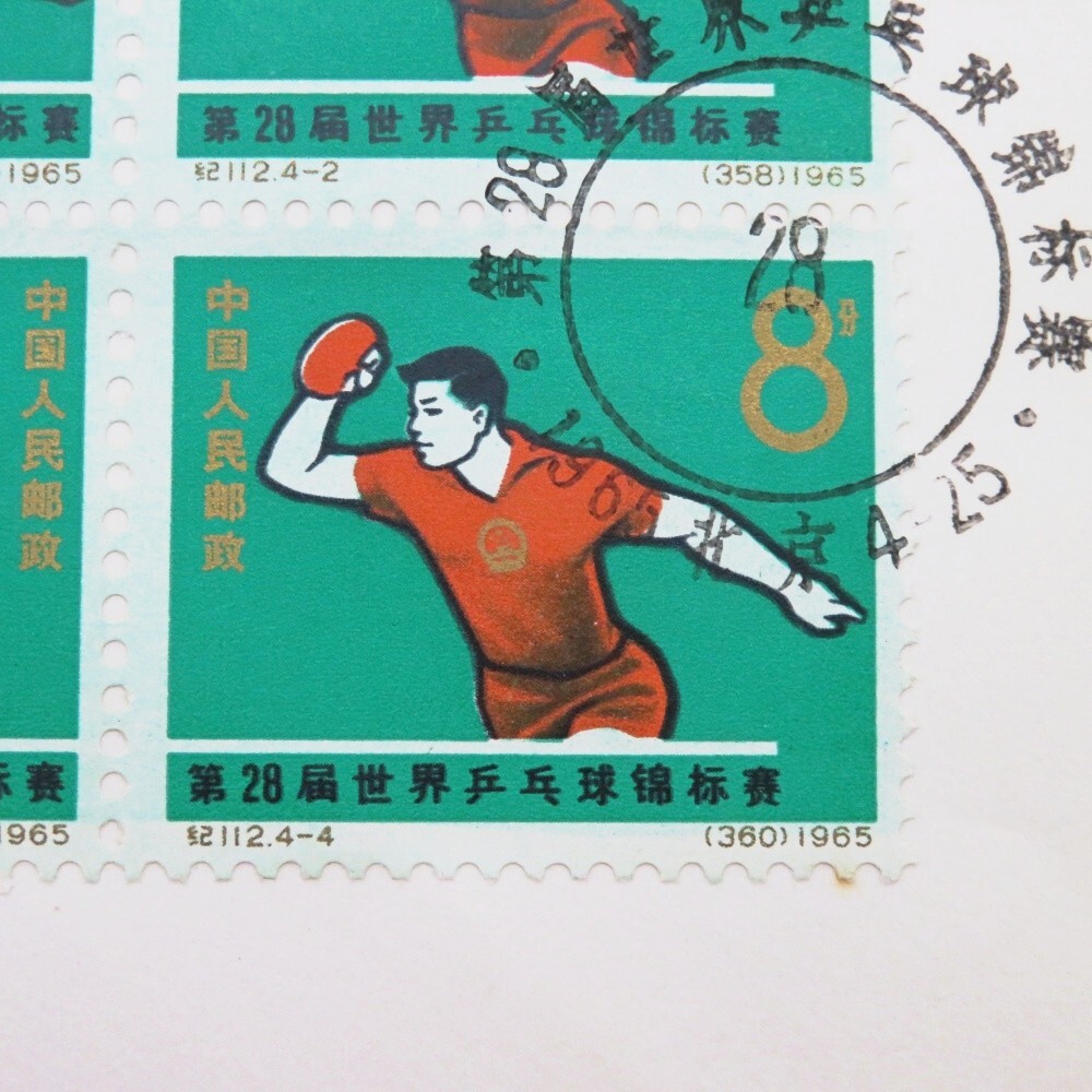 | 商品名 | 1円〜 中国切手 紀112「第28回世界卓球選手権大会」4種完 FDC/初日カバー 4178112 |