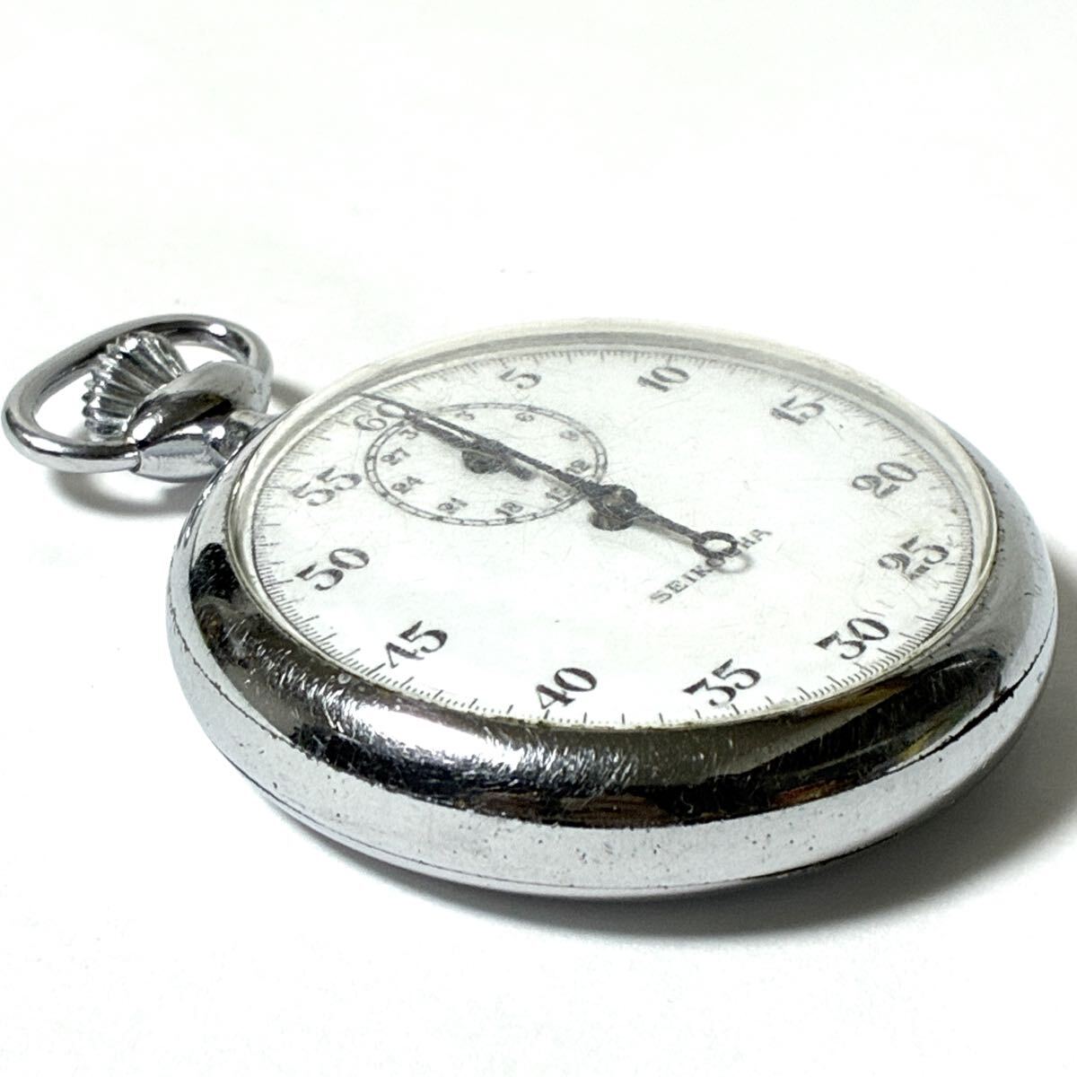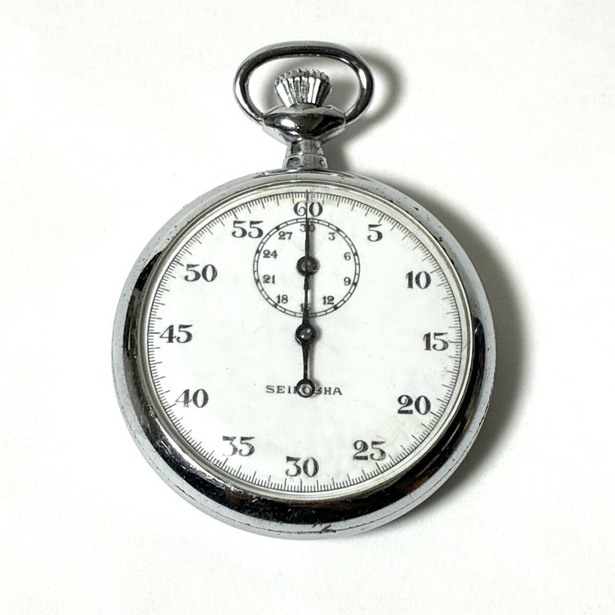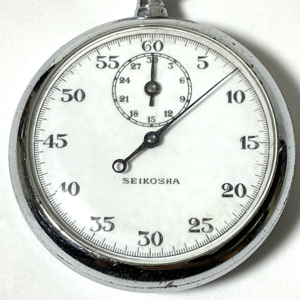 精工舎 SEIKOSHA ストップウォッチ 手巻き シルバー色 銀色 白文字盤 アナログ セイコー アンティーク