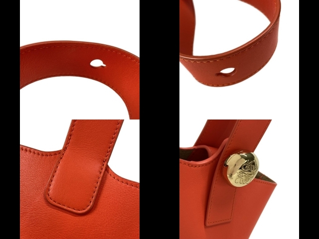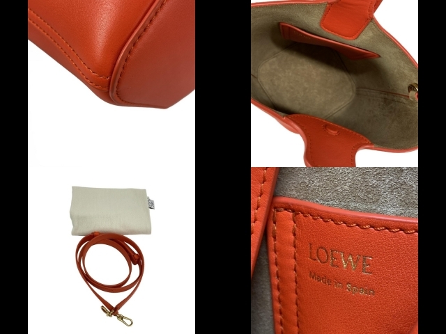 ロエベ LOEWE ハンドバッグ AANBBBMX01 ペブル バケットバッグ ミニ オレンジ 美品 バッグ