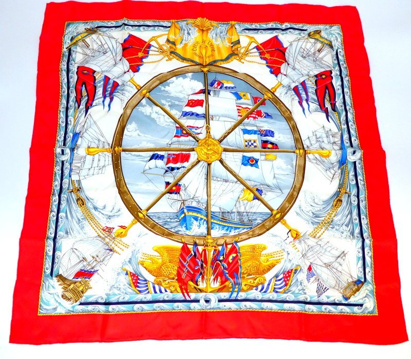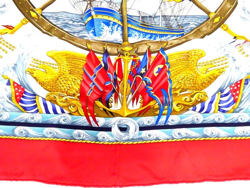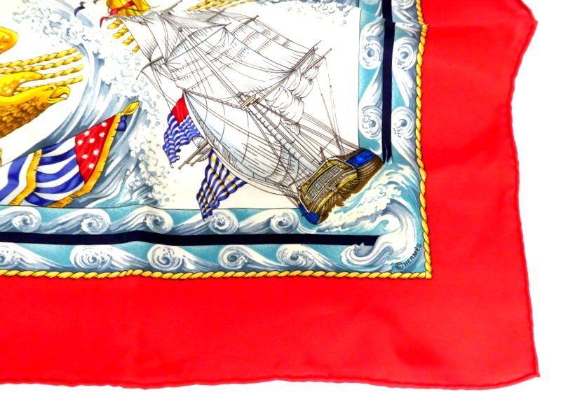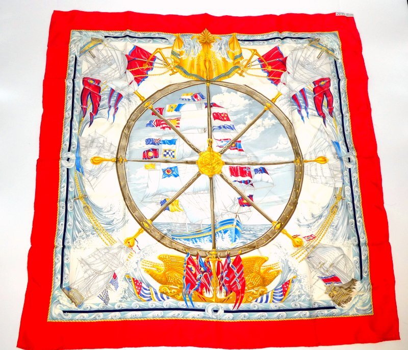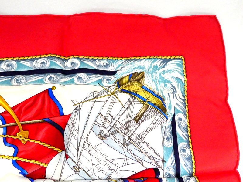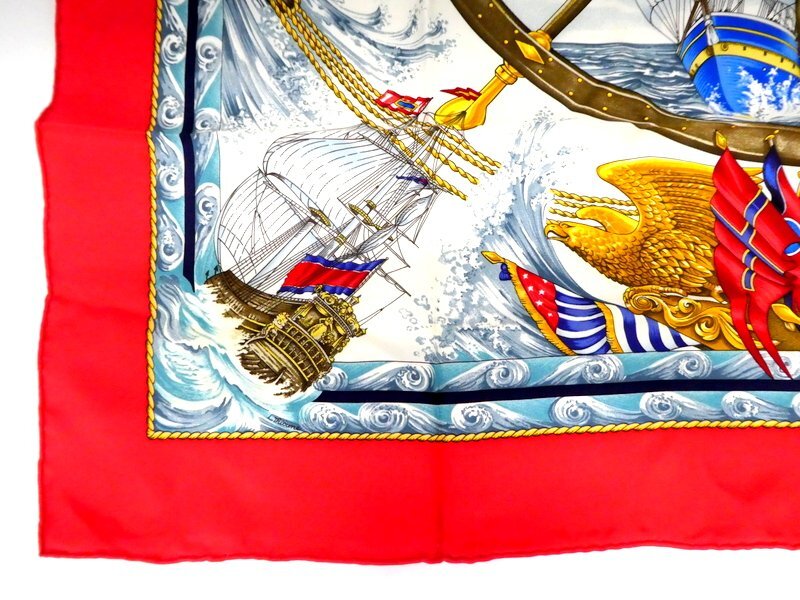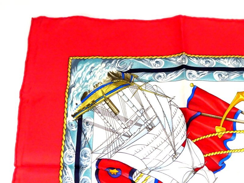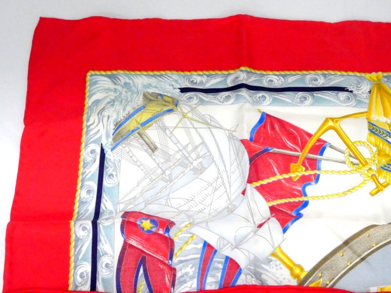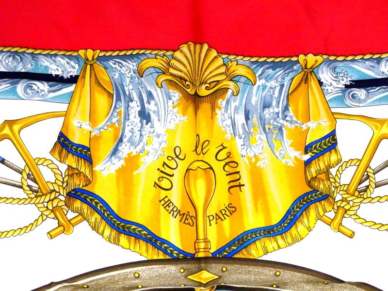 スカーフ HERMES エルメス カレ90 Vive le Vent 風よ吹け レッド系 シルク100% ブランド 服飾小物 1円~ K0208