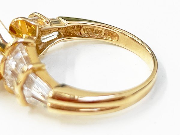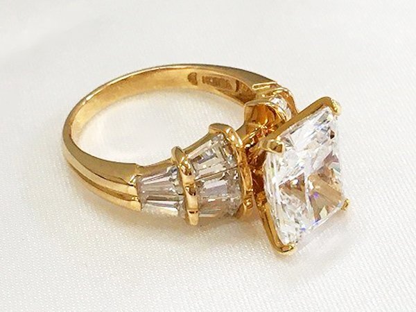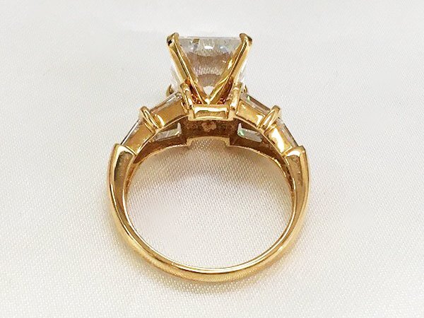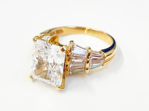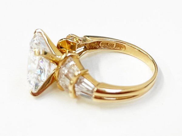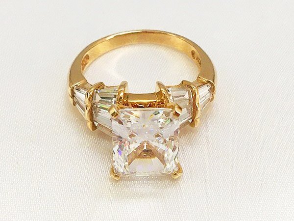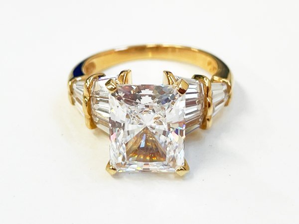 指輪 リング 14K 金 宝石 ストーン エメラルドカット テーパーバケット ジュエリー/ゴールド×クリア/10号/1円スタート/AY