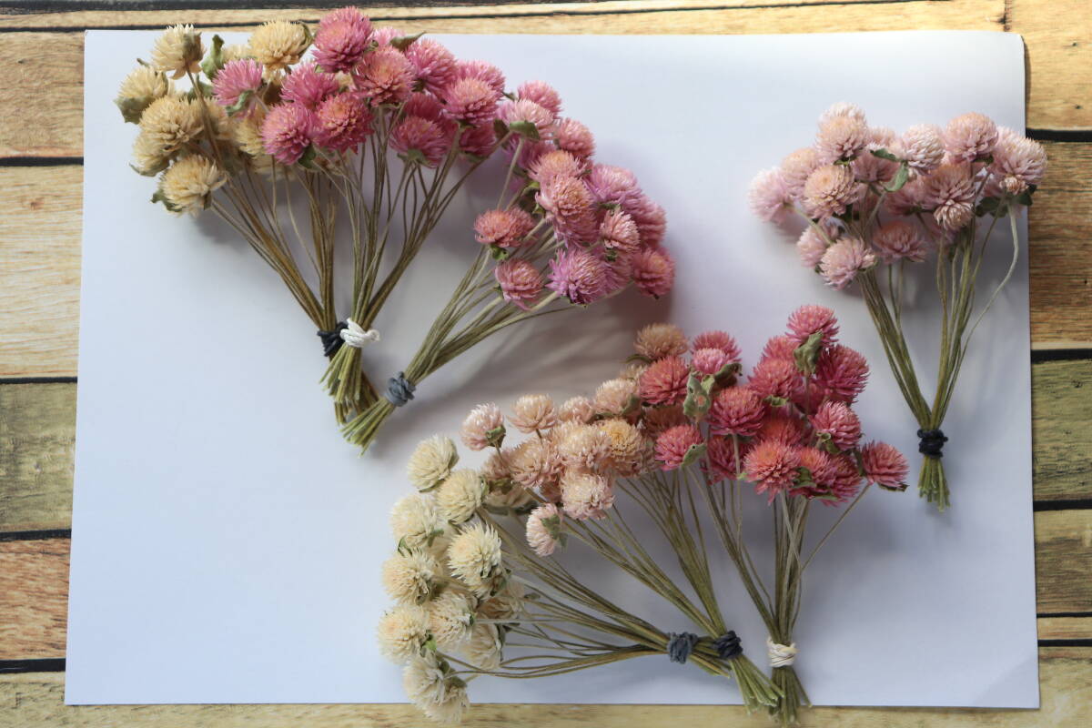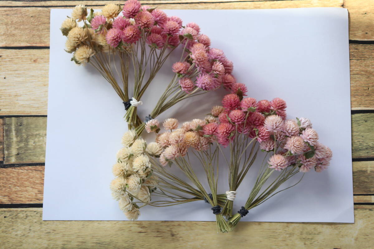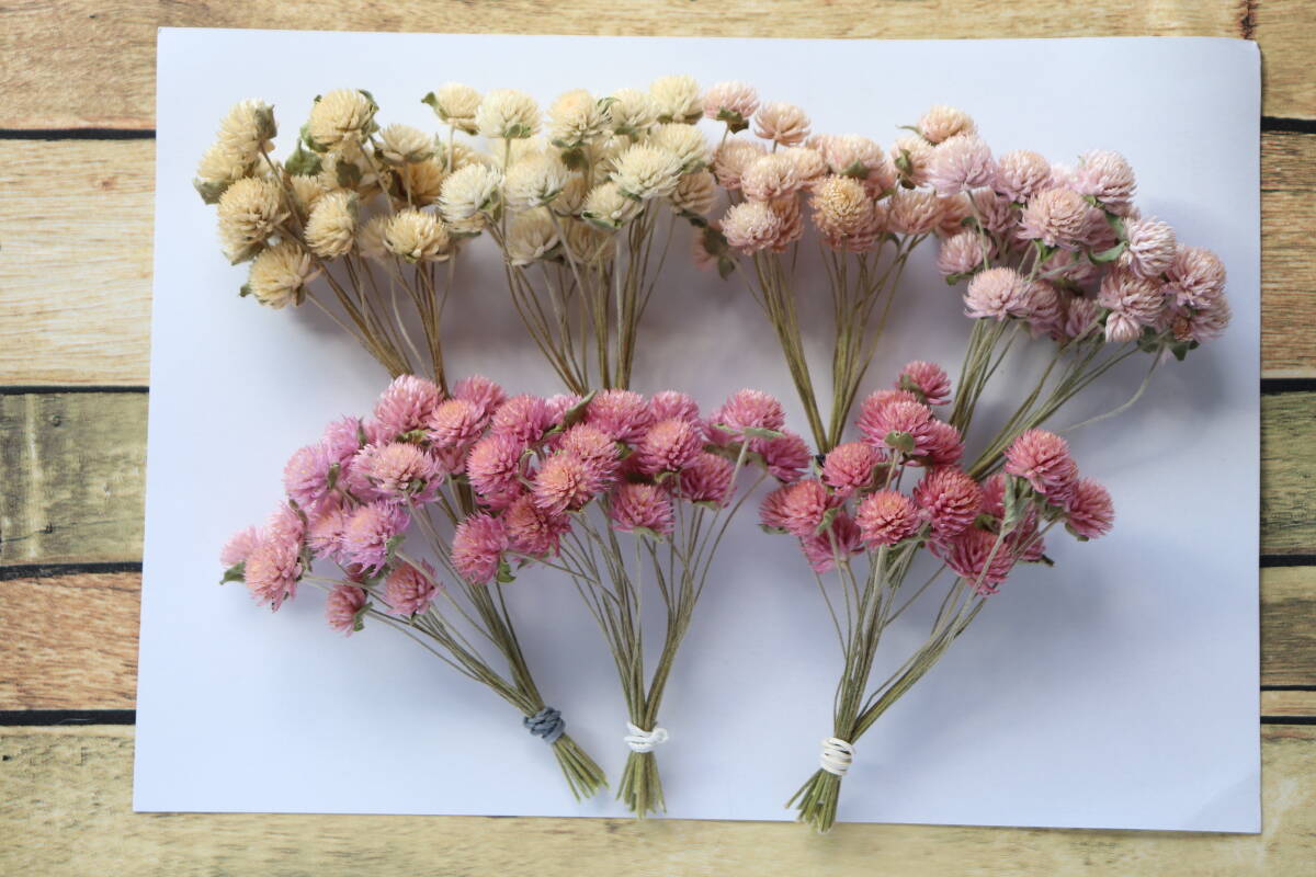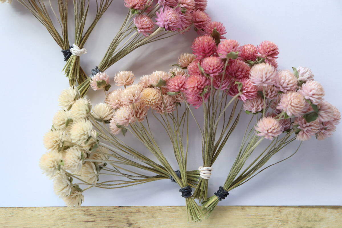 *淡いピンク系3色&白/ホワイトの千日紅でセットにしてみました。