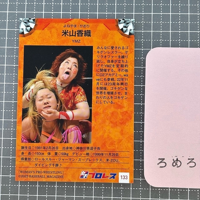 ◇2023年BBM♯133米山香織/Kaori Yoneyama/YMZ【プロレスカード】スターダム