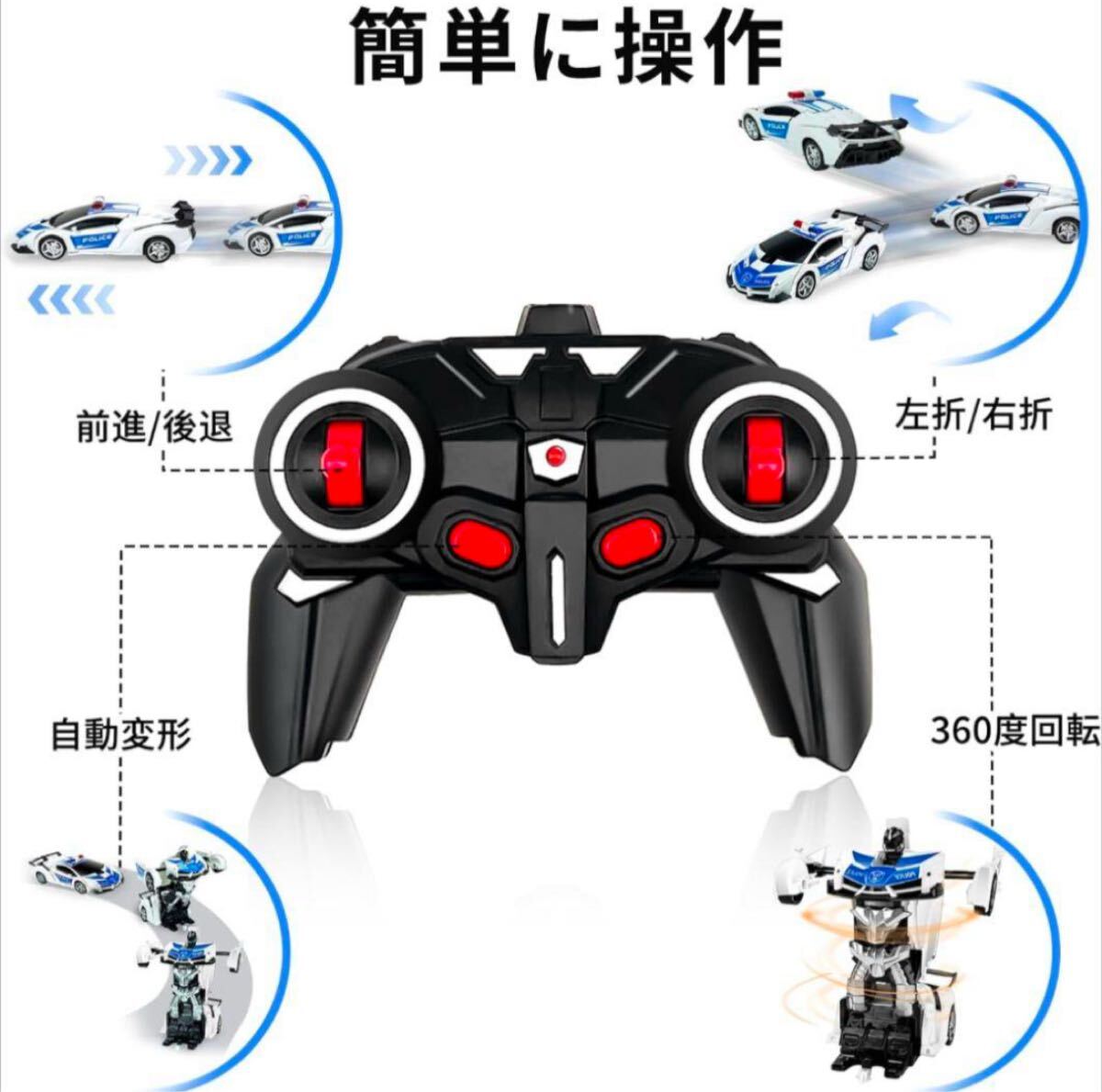 Huang Yem ラジコンカー 車おもちゃ スタントカー 警察車 充電式 リモコン RCカー モデルカー ロボットに変身でき 2.4GHz LED搭載 360度回転 こども向け 子供おもちゃ 誕生日 クリスマス プレゼント (青白)