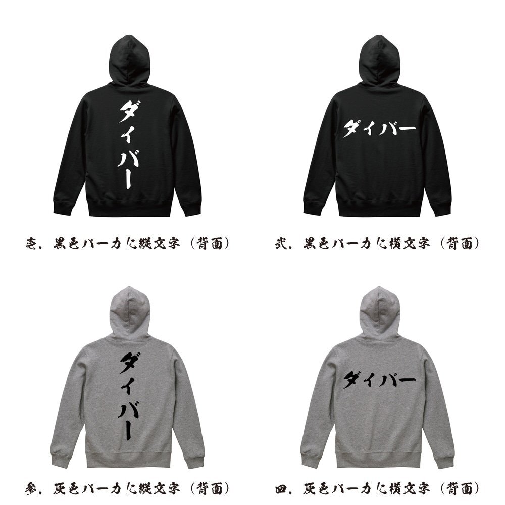 ダイバー 書道家が書く デザイン フルジップ パーカ 【 職業 】 メンズ レディース キッズ