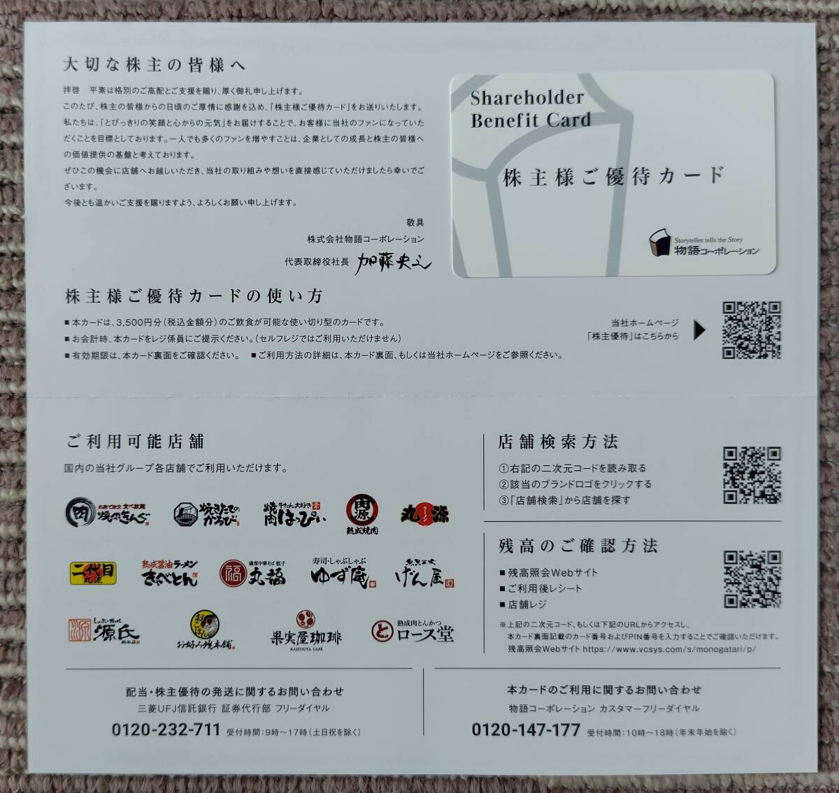 【最新】物語コーポレーション株主優待カード 3,500円分 焼肉きんぐ 丸源ラーメン/有効期限2026年9月30日