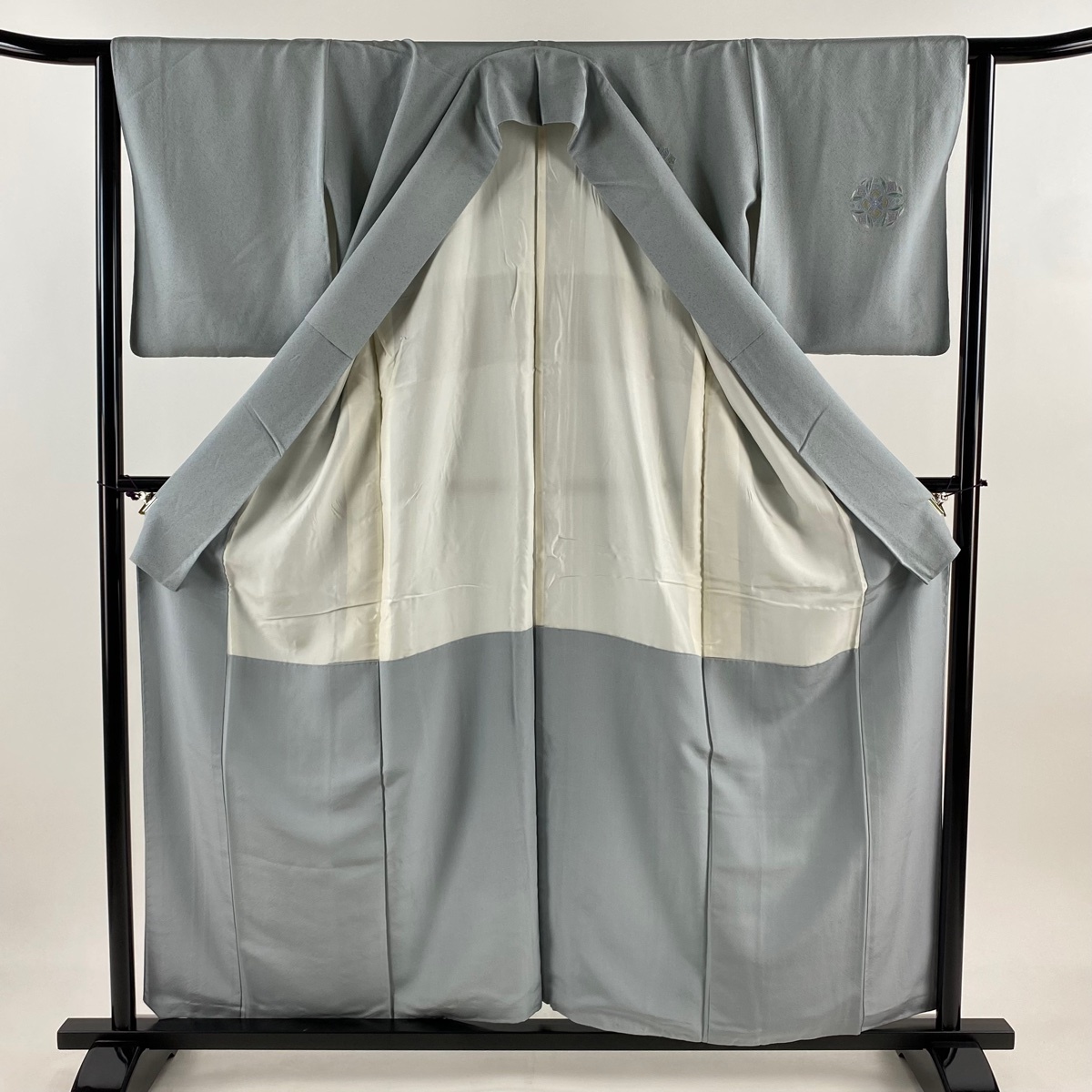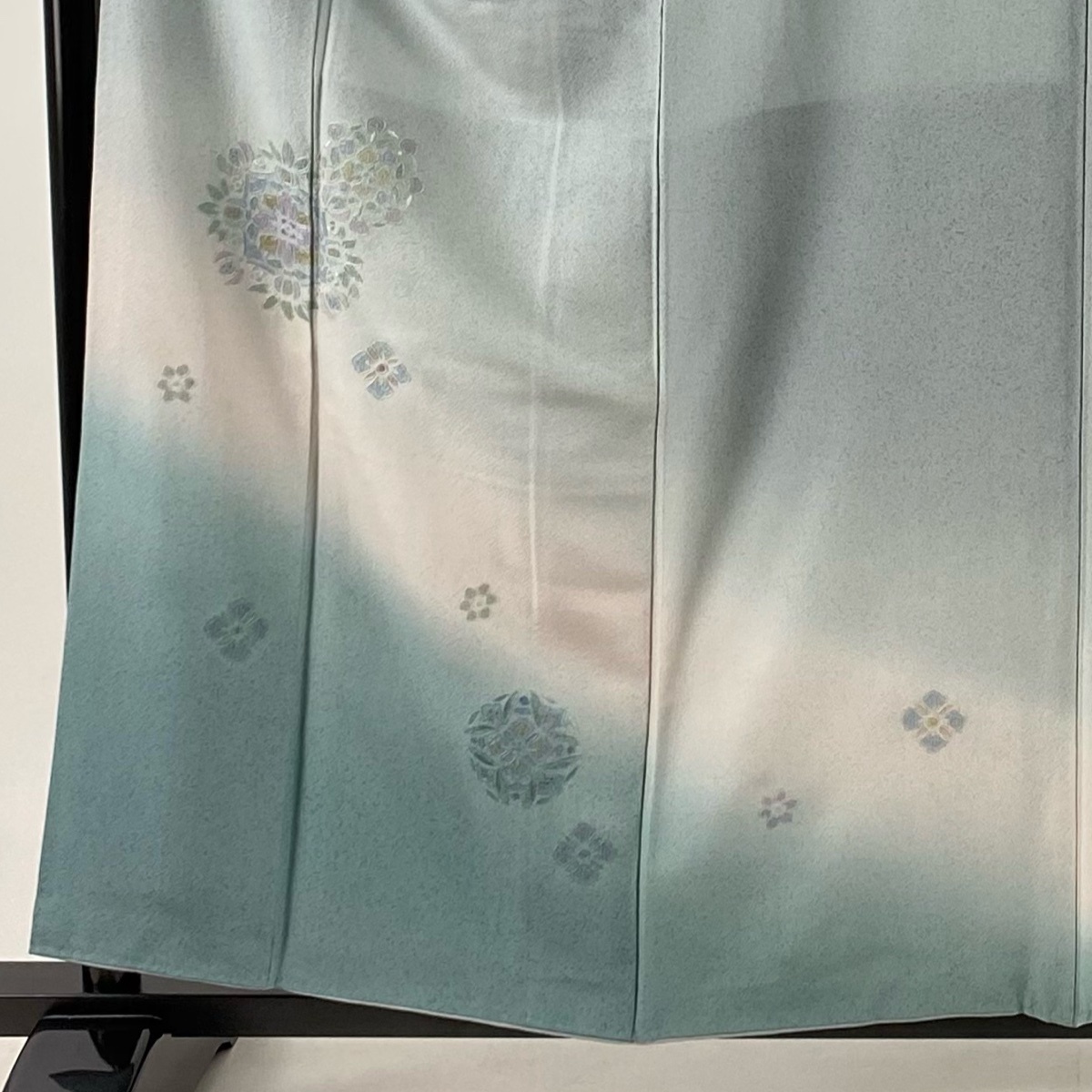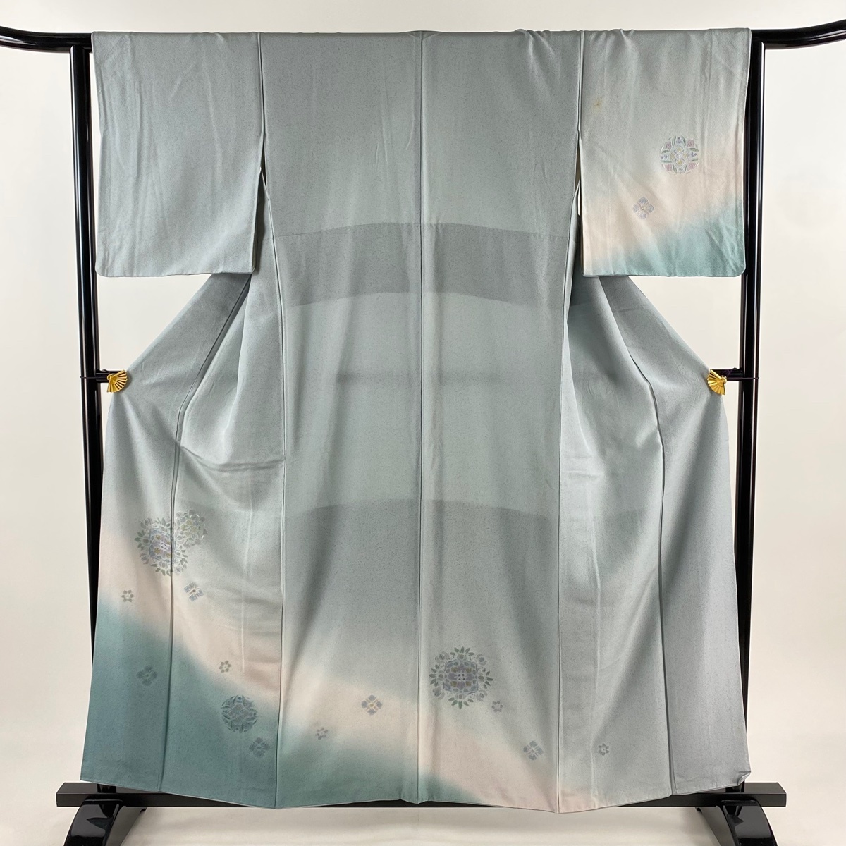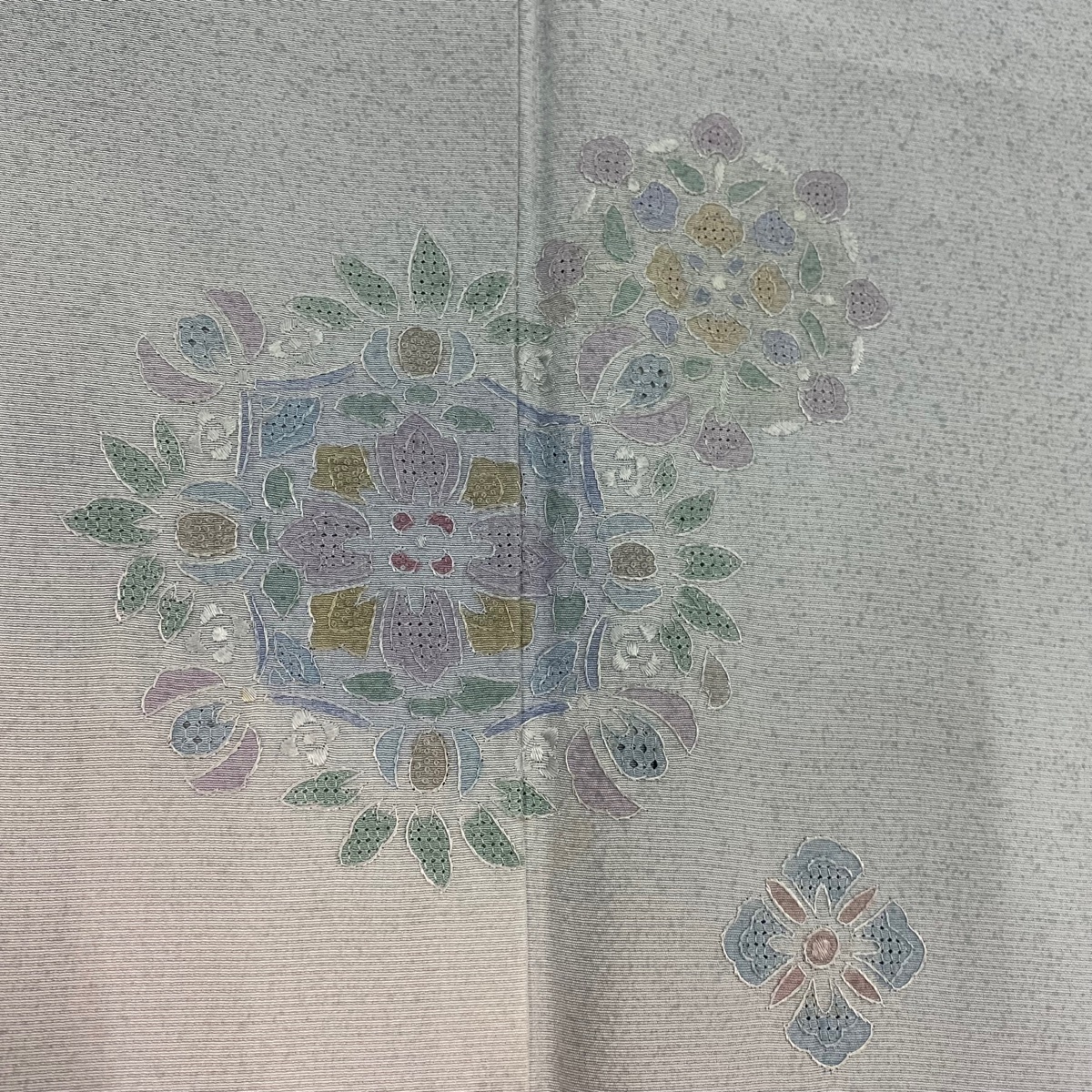 | 付下げ 秀品 華文 花 刺繍 ぼかし 青灰色 袷 身丈158 裄丈63.5 S 正絹 【中古】 |