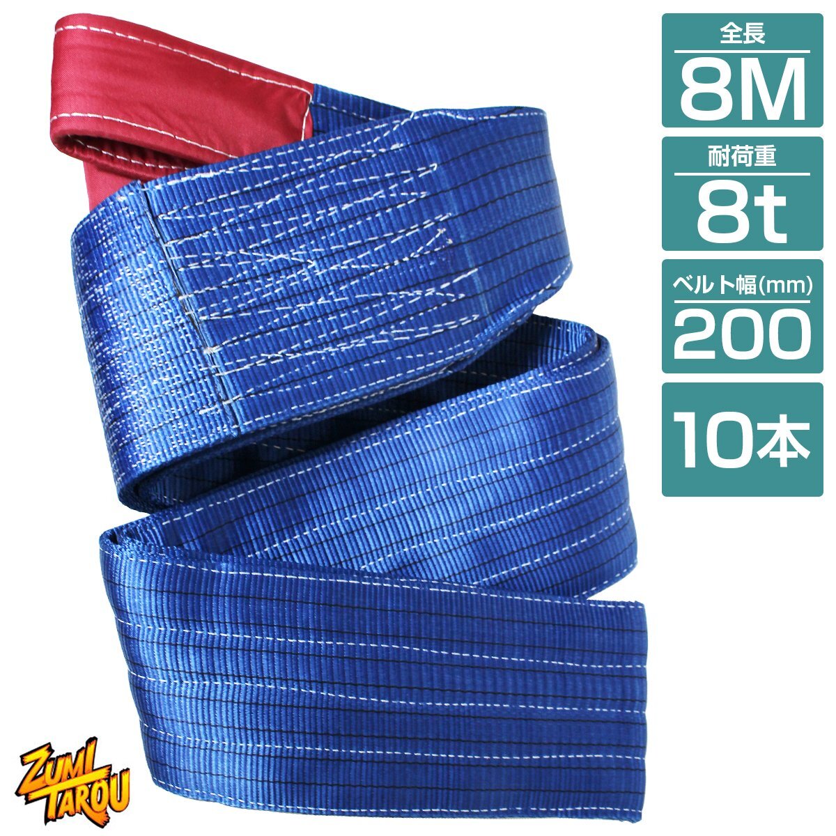 [10本 セット/耐荷8t/長さ 8m] スリング ベルト 吊上げ ナイロン クレーン ロープ 荷吊り 玉掛け 牽引 運搬 8000kg 8トン 幅200mm