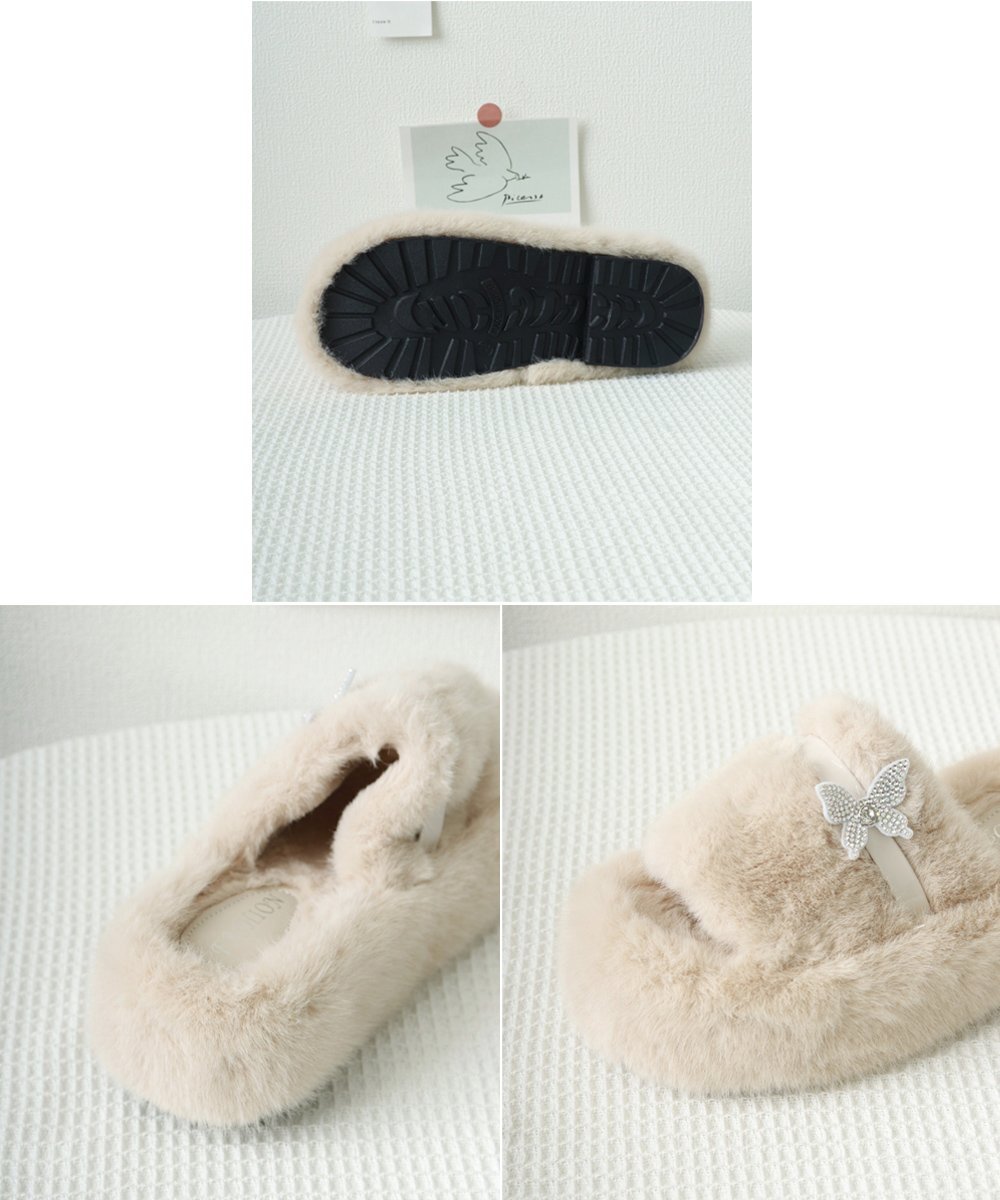 厚底ファーサンダル 蝶々 スリッパ 25.0cm(40) ブラック