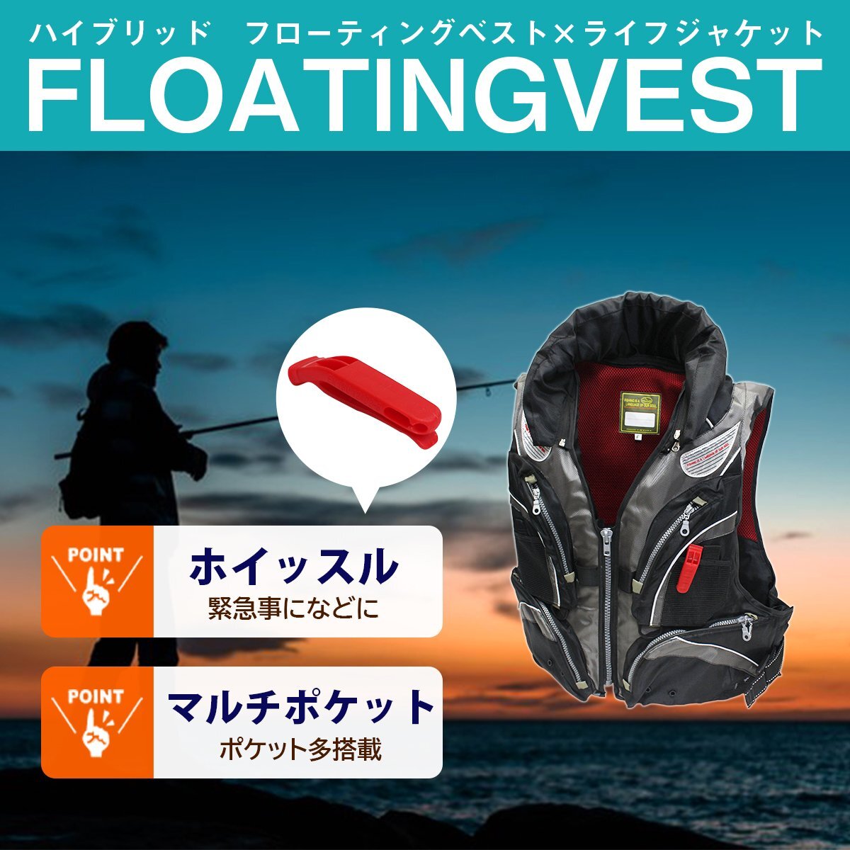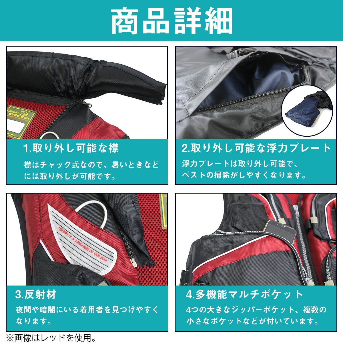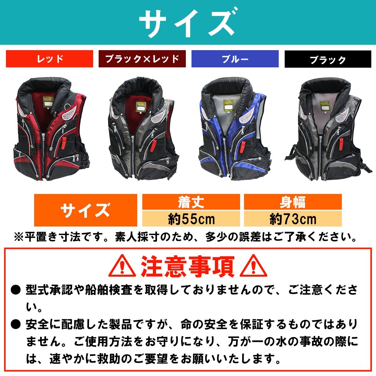 フローティングベスト ブラックレッド 救命胴衣 釣り ベストタイプ 浮力脱着可能 ライフジャケット フィッシングベスト ポケット付き
