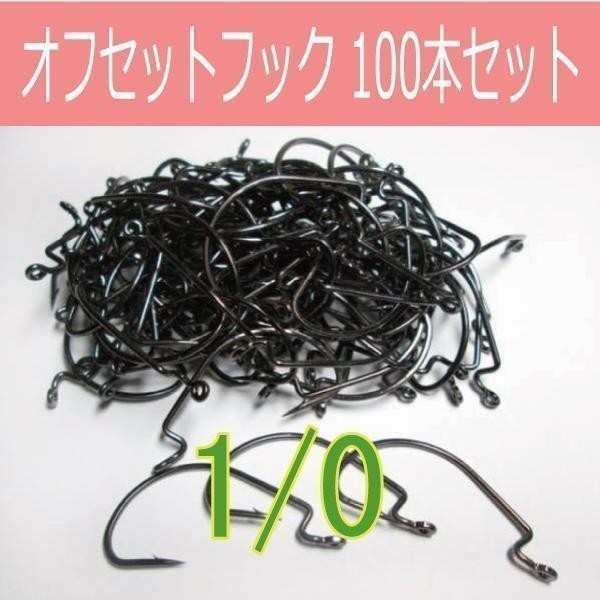 【 送料無料 】オフセットフック Offset hook 1/0 100本セット ワームフック ワーム針 サイズ9種類(#6~5/0)☆