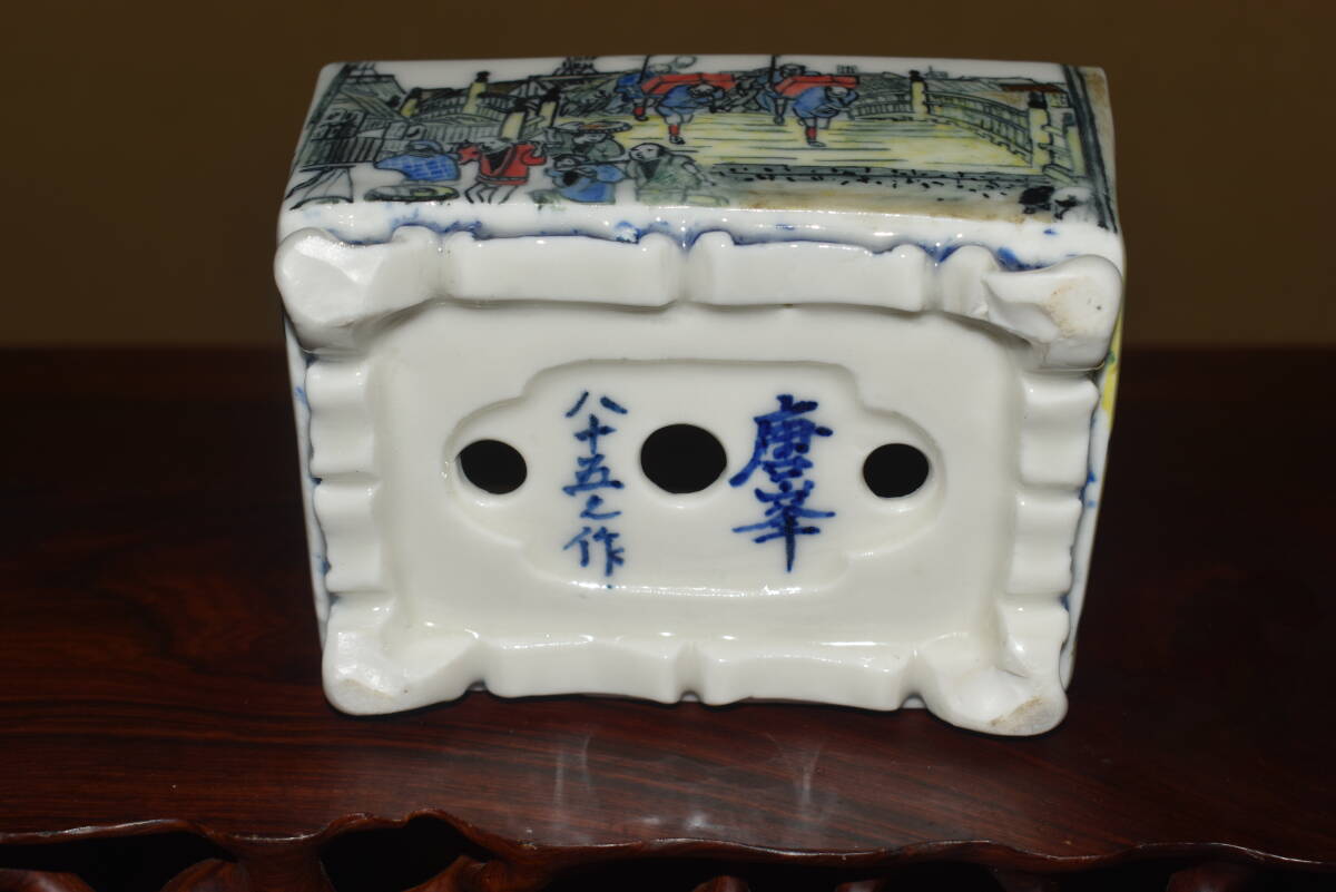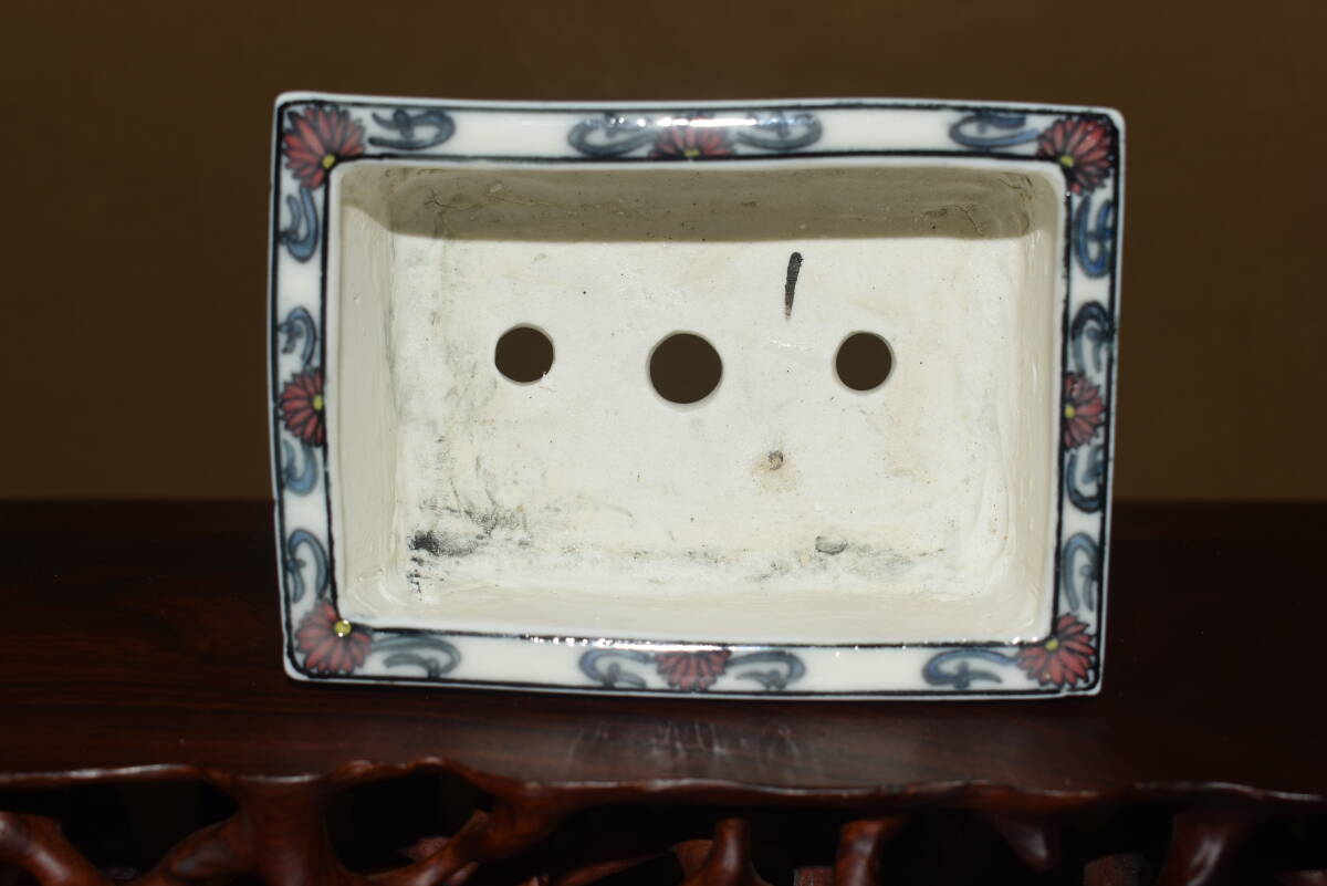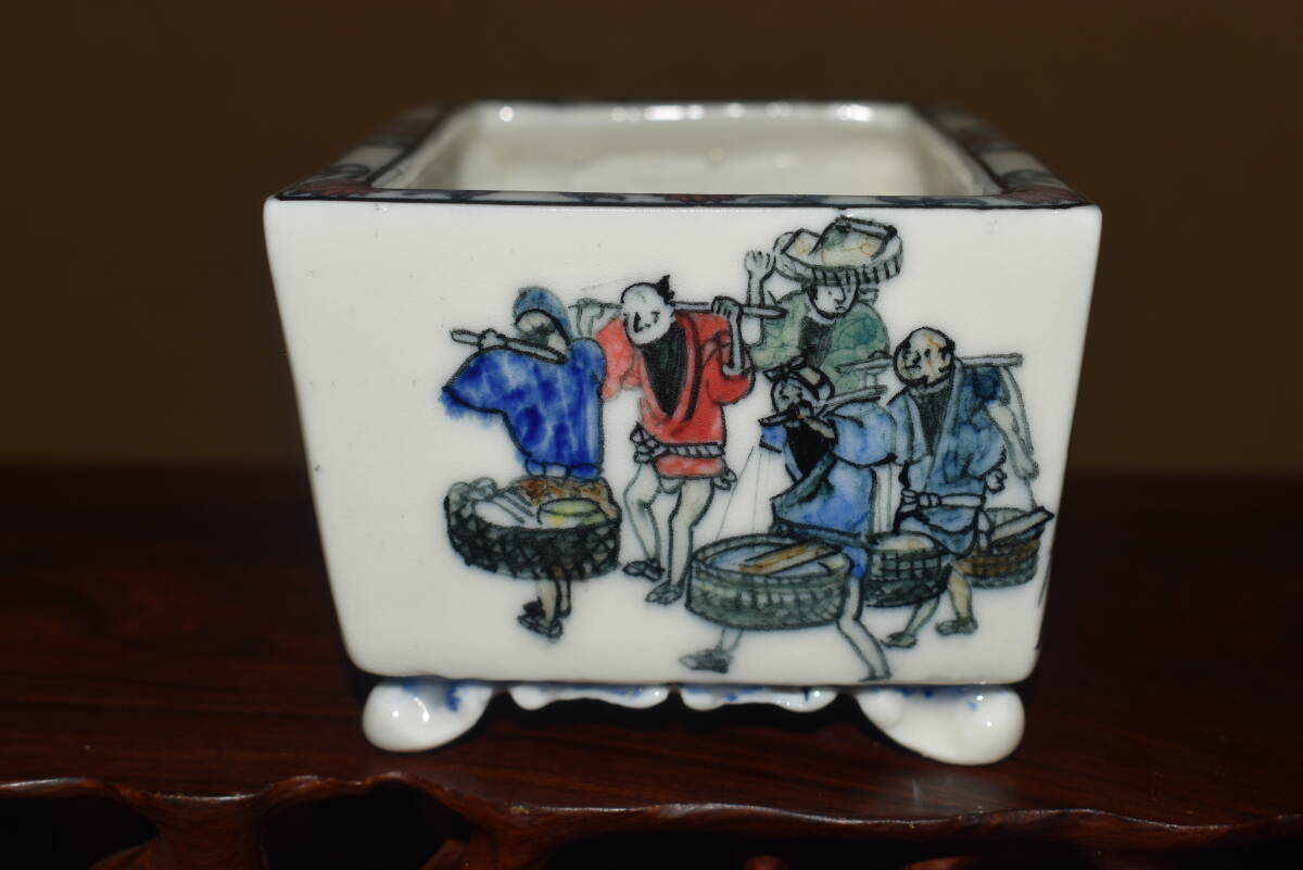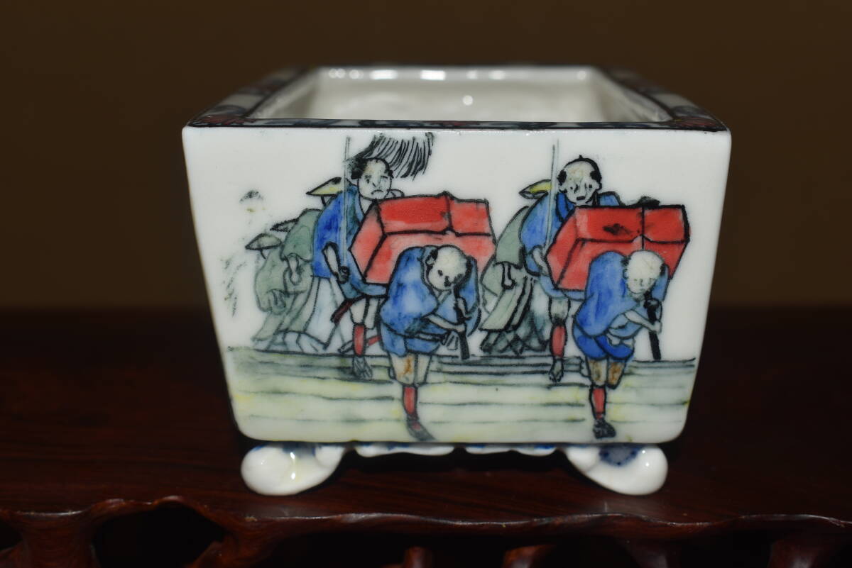 サイズ13,2x9,5x7,0cm 人気絵鉢作家<貴重作、唐峰・色絵五十三次、日本橋図・繊細画・実用性抜群・小品サイズ>切立ち雲脚長方鉢のご紹介です・・・・貴重作・色絵の五十三次日本橋図が繊細に描き込まれ、実用にも優れた素晴らしい逸品です・目立つ傷はありませんが、脚に削げがあります。ガタはありません。・・・・・ 状態を良くご確認の上、ご入札宜しくお願い致します。 その他、大変古い物ですので縁・足等にホツ・スジ・カケ等がある場合がございます。画像を良くご確認の上、御入札宜しくお願い致します。完品をお求めの方は入札をお控えお願い致します。*注意事項* オークション終了後48時間以内に必ずご連絡をお願いします。ご連絡がない時は、ご購入意思がないと判断し、落札者さま都合のキャンセルとさせて頂きます。再三のご連絡を差し上げても、ご連絡がない場合は、時点繰り上げとさせて頂きます。マイナス評価の多い方や新規の方を削除する場合がありますので、ご了承下さい。また、入札価格が低価格の場合は取消終了とさせて頂く場合がございますので、ご了承願います。古い物等ございますので小さな傷等は、見落とす場合がございますので、写真を良くご覧になり納得の上ご入札して下さい。また、完品をお求めの方は入札をお控えお願い致します。キズ・破損等のご連絡は商品到着5日以内にご連絡ください。それ以降は対応致しかねますので到着後、商品を必ずご確認ください。輸送中の事故(鉢が割れる、枝が折れる等)につきましては商品到着時に確認し取引ナビまたは、お電話にてご連絡下さい。