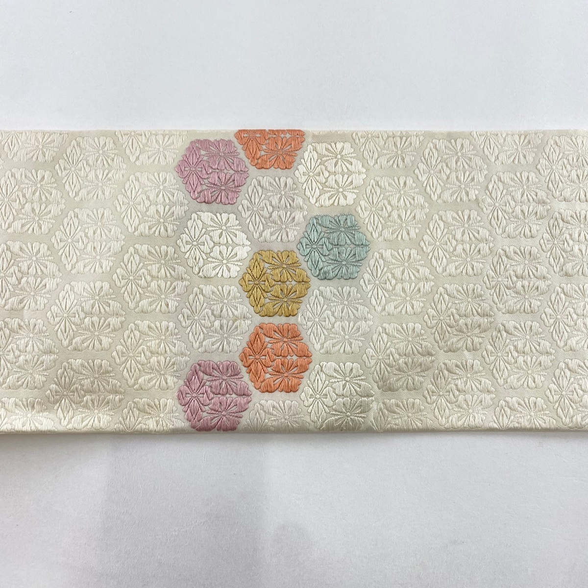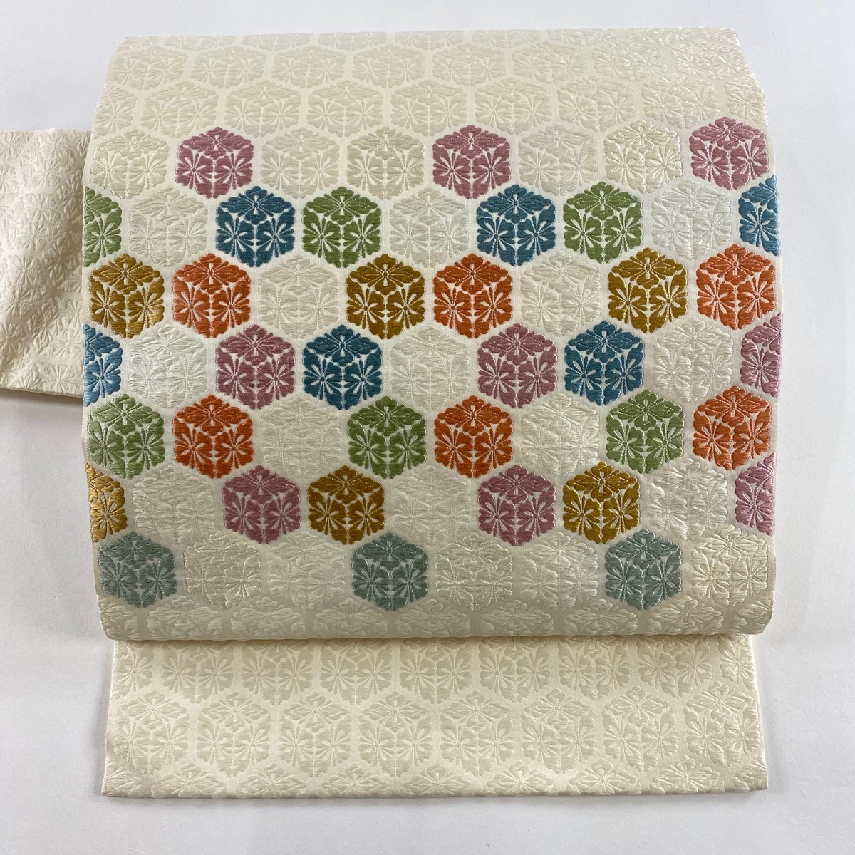 | 名古屋帯 秀品 花菱 クリーム 正絹 【中古】 |