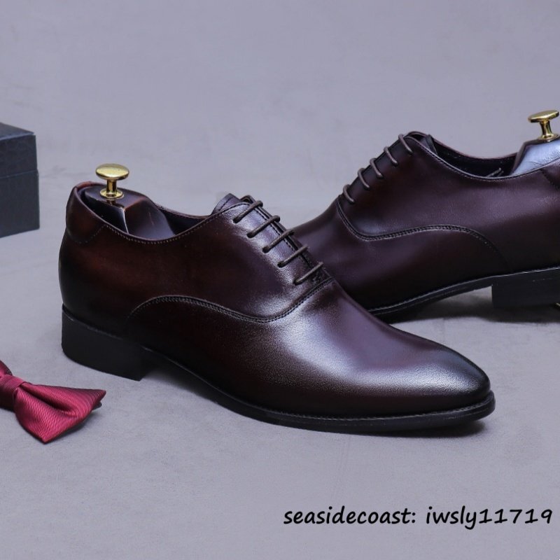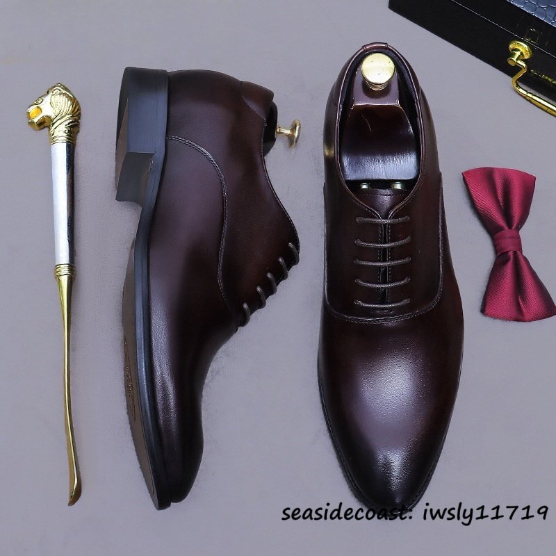 極美品◆新品 本革 レザーシューズ ビジネスシューズ メンズ イタリア高級牛革 職人手作り 紳士靴 結婚式 革靴 フォーマル ブラウン 24.5cm