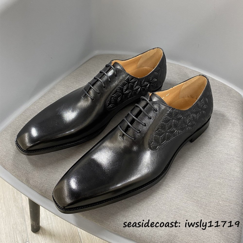 最高級■定価10万 ビジネスシューズ メンズ 紳士靴 職人手作り 本革レザーシューズ 超希少 革靴 牛革 フォーマル 冠婚葬祭 ブラック 25.0cm