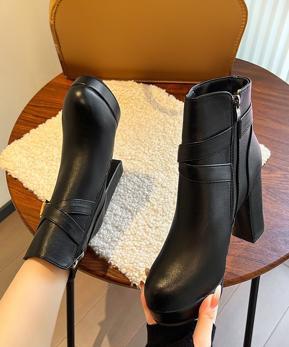 新作暖かいブーツ 歩きやすい秋冬くつ チャンキーヒール靴