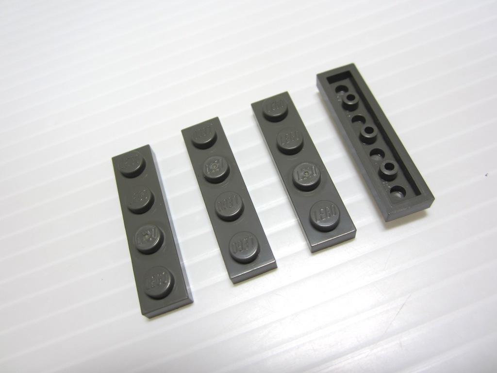 本品は旧濃灰色の1×4プレート4点セット(中古品)になります。
