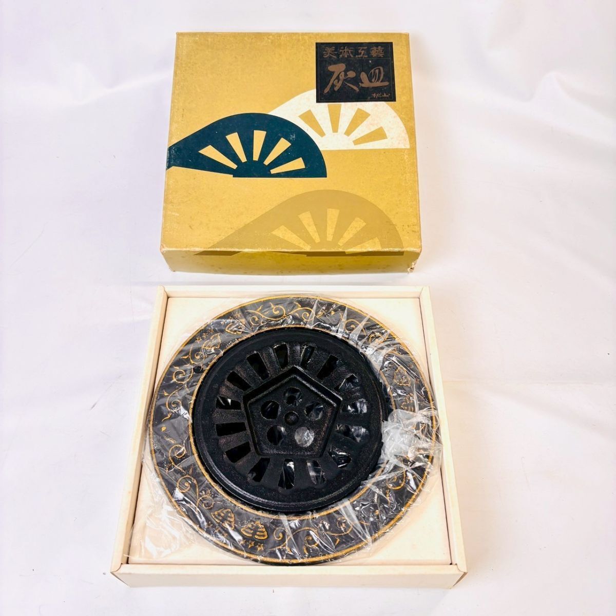【鉄灰皿】 美術鋳物 金属工芸品 香炉 蚊やり 置物 昭和レトロ インテリア アンティーク 骨董 長期保管品 鉄器 ビンテージ 未使用