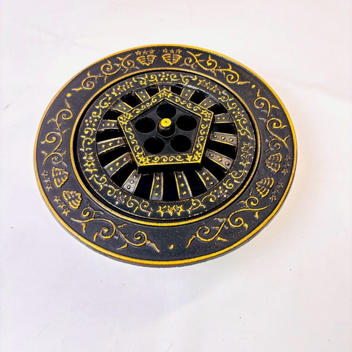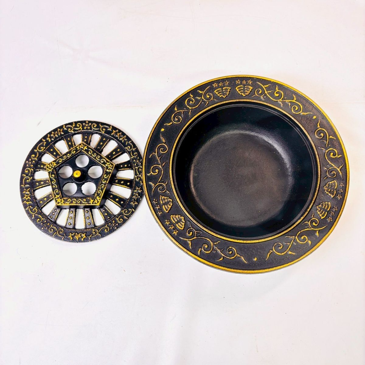 R927-4 【鉄灰皿】美術鋳物 金属工芸品 香炉 蚊やり 置物 昭和レトロ インテリア アンティーク 骨董 長期保管品 鉄器 ビンテージ 未使用