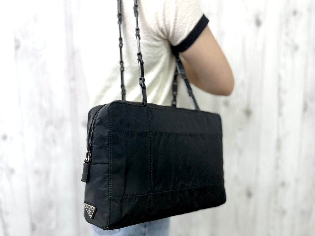 極美品 PRADA プラダ テスート プラチェーン ショルダーバッグ バッグ ナイロン 黒 90253Y | ||