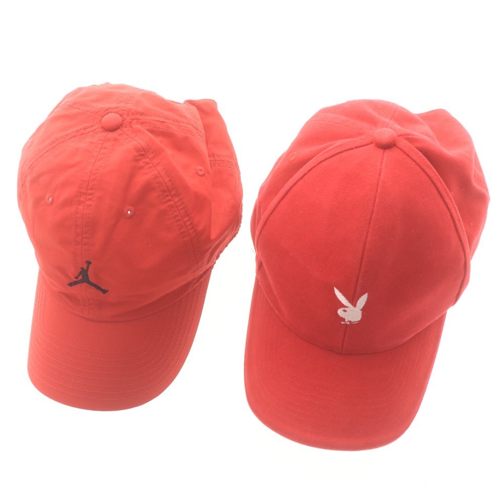 ナイキ ジョーダン プレイボーイ キャップ 2点セット まとめ売り 帽子 ウサギ ジャンプマン ロゴ メンズ レッド 実寸はジョーダンのキャップを測っております。 付属品:写真のものが全てです ●表記サイズ:FREE ○実寸 頭周り(内寸):51〜62.5cm 高さ:12cm つば:12cm ⇒ アパレル商品のカラー基準・採寸方法・海外サイズ換算表 (参考)トルソー(マネキン)は男女ともMサイズです。 素材:本体:綿63%ナイロン37% 裏地(前部分):綿100% | ||||||||||||||||