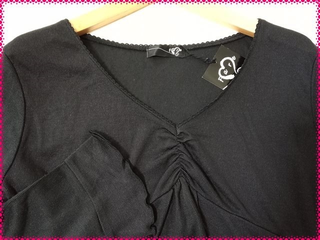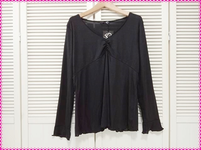 【送料無料】LLー3L * 新品 日本製 Fare ファーレ 大人かわいいカットソー♪ ブラック